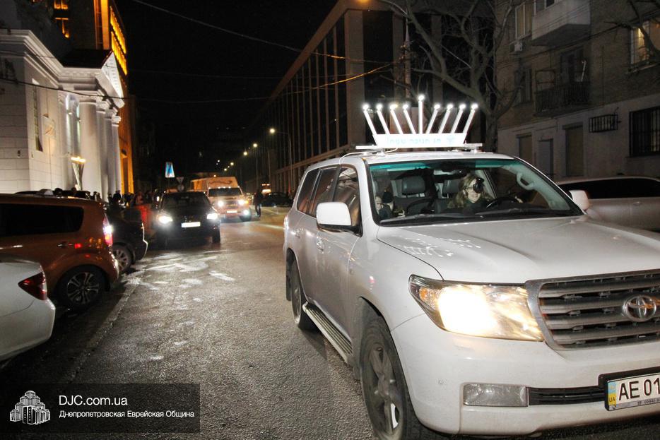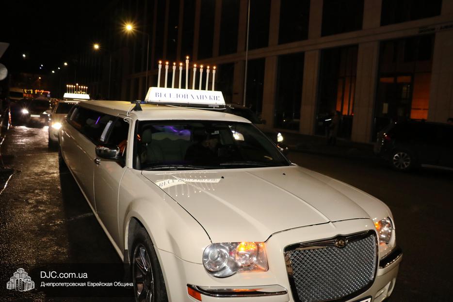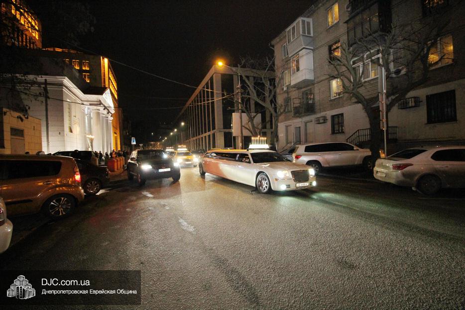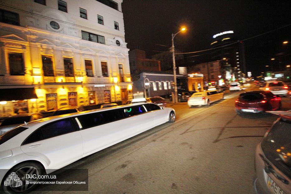 Как всегда, ханукальный парад лимузинов отправился в путь от синагоги «Золотая Роза» и торжественным кортежем проехал по улицам и проспектам Днепра, неся свет ханукальных свечей всему городу.