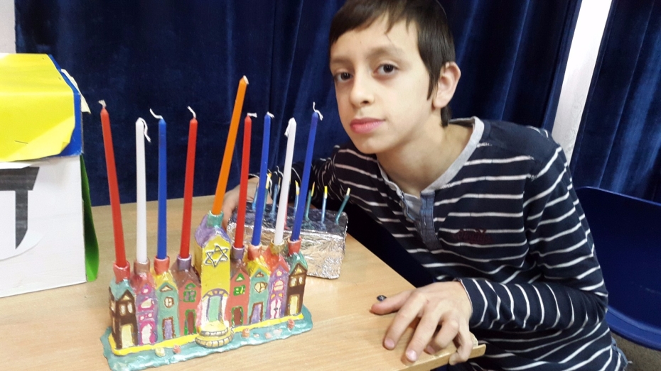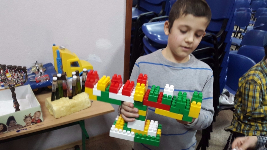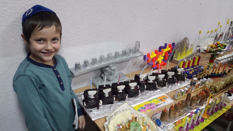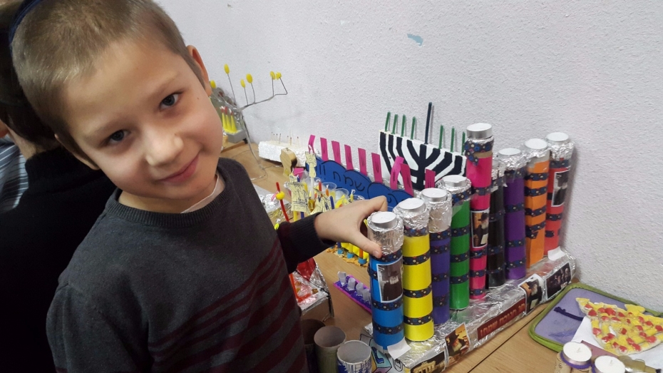 Как известно, для того, чтобы вести себя на ярмарке не как «Марко» из популярной хасидской песни «Цома, цома», надо иметь возможность что-нибудь продавать или покупать. Многие дети специально для этого праздника приготовили самые разнообразные ханукии – тут были и ханукии из соленого теста, и ханукия из конструктора «Lego», и даже торт-ханукия. Те же, кто не успел приготовить ханукию дома, мог это сделать во время праздника, под руководством Леи Дорфман.