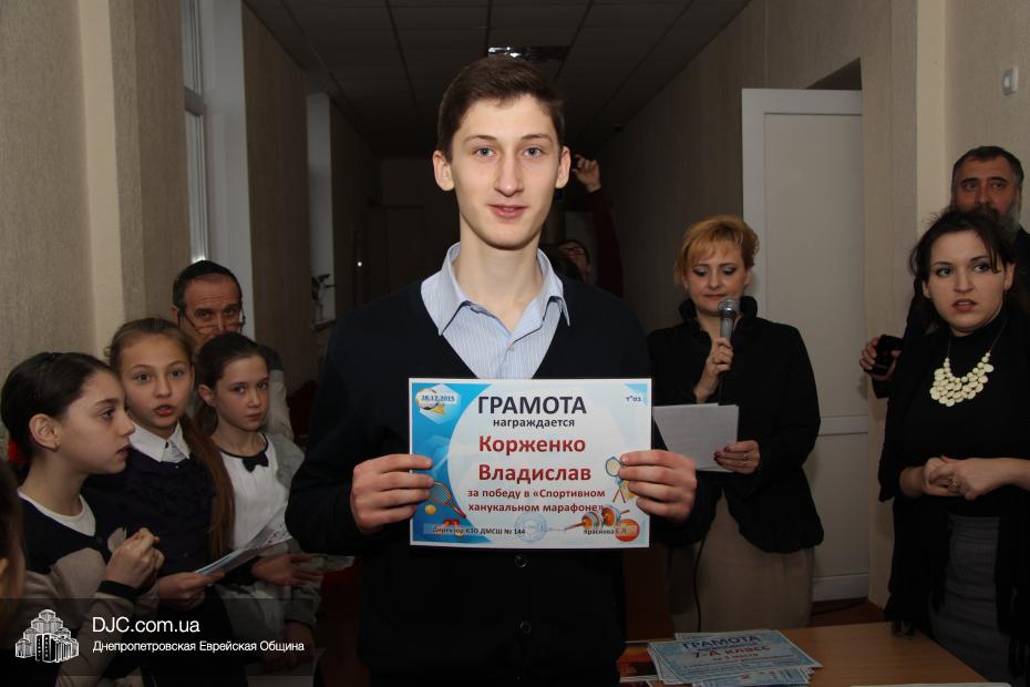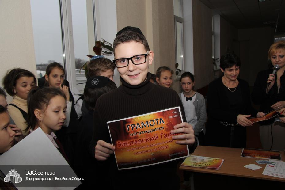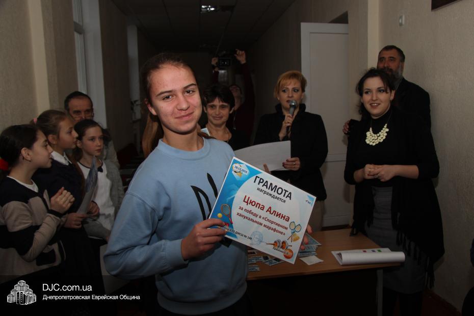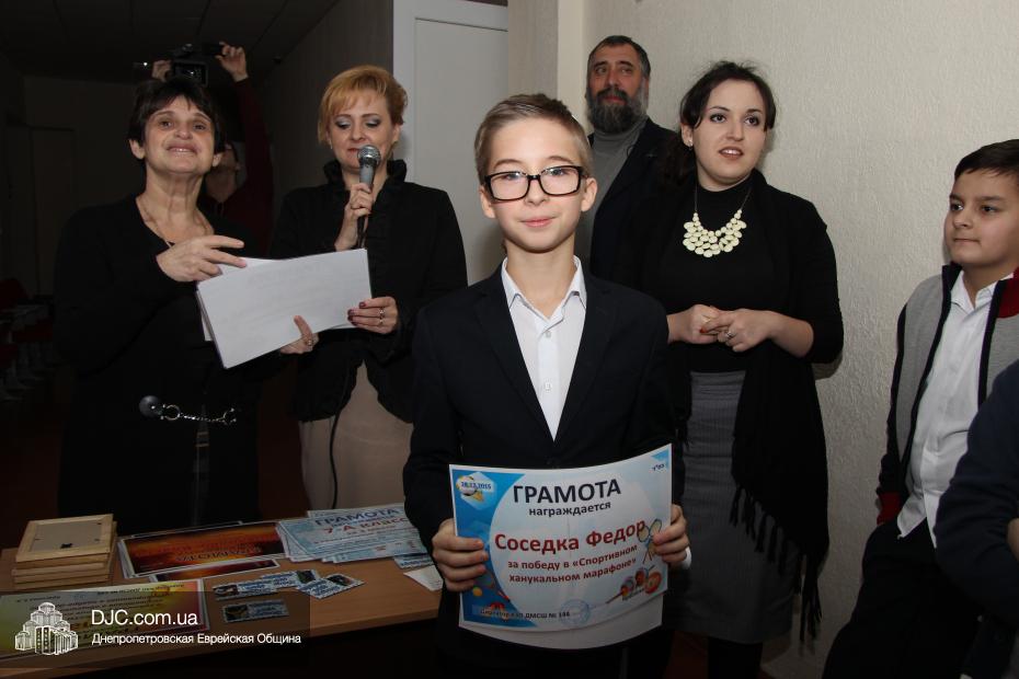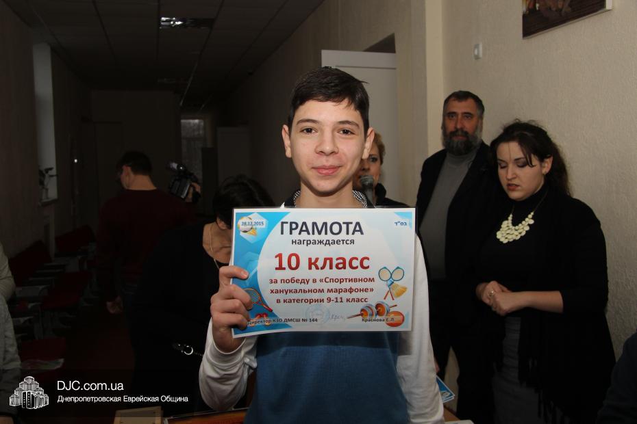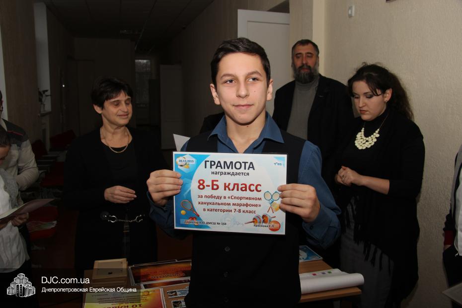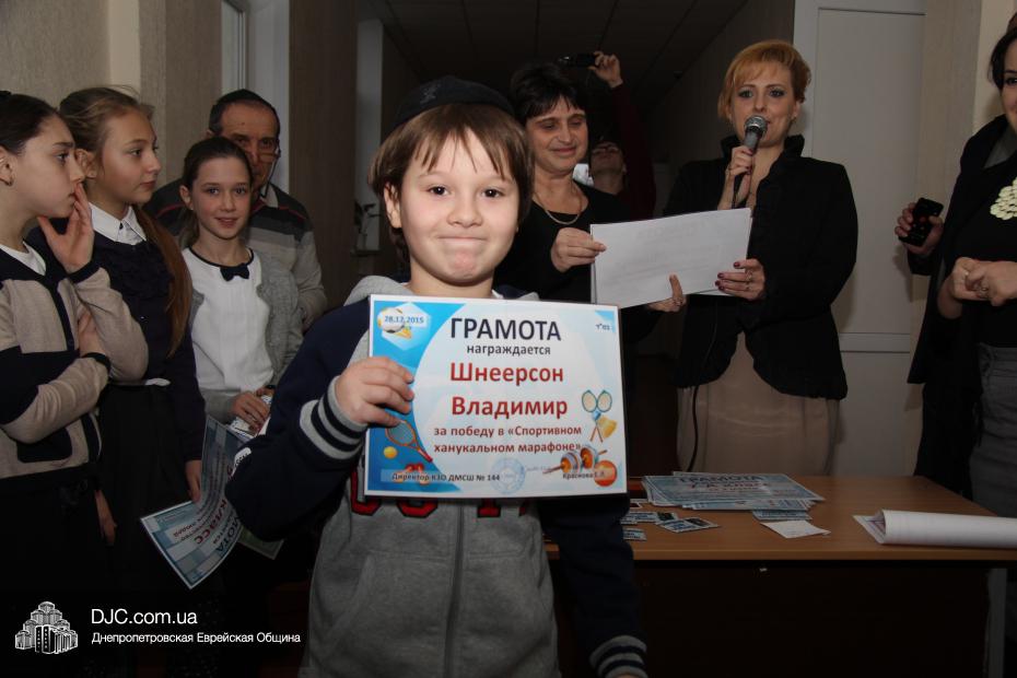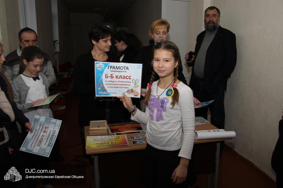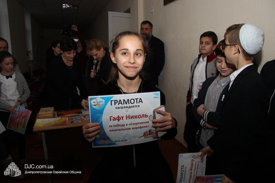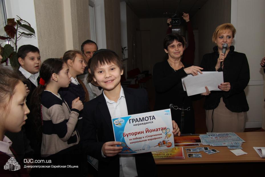Большое внимание было уделено спортивному ханукальному марафону, где ученики старшей школы показали значительные успехи в «наклонах и подниманиях туловища», «сгибаниях и разгибаниях рук» и «прыжках со скакалкой». Самыми спортивными классами признаны 6-Б, 8-Б и 10 классы. Что же касается юных макковеев, то приводим список детей, показавших лучшие результаты: Шипилова Нелли, Шнеерсон Владимир, Католикян София, Соседка Федор, Буторин Йонатан, Цюпа Алина, Корженко Владислав, Сонкин Михаил, Рабовская Дана, Гафт Николь.