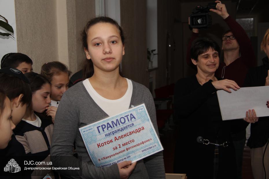 Кроме спортивного, в школе проходил также «Ханукальный фотомарафон», и в нем было два зачета: командный и личный. В первом победил 8-А класс, II место занял 9-А, а III – 7-А, что же касается второго, то лучший ханукальный фотограф – Державецкий Даниэль, на втором месте Александра Коток, а на третьем – Рена Шаринова.