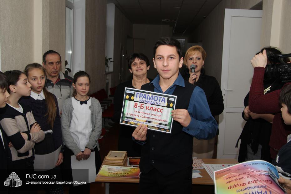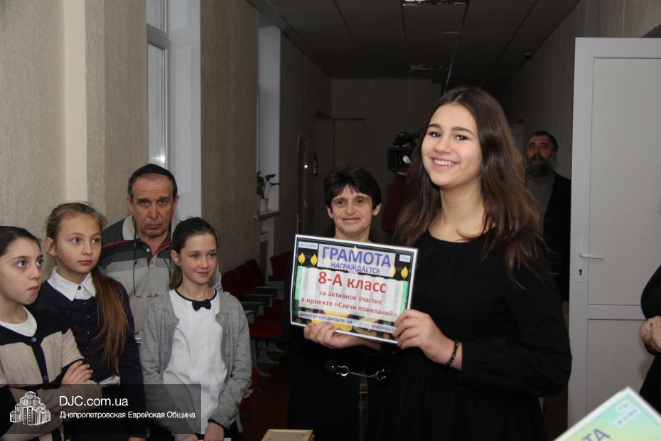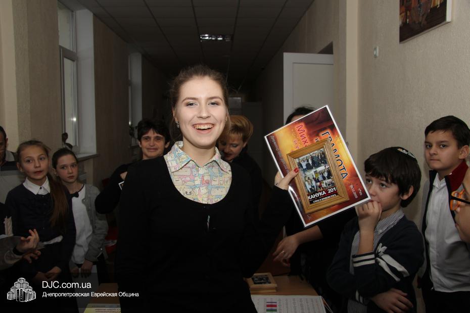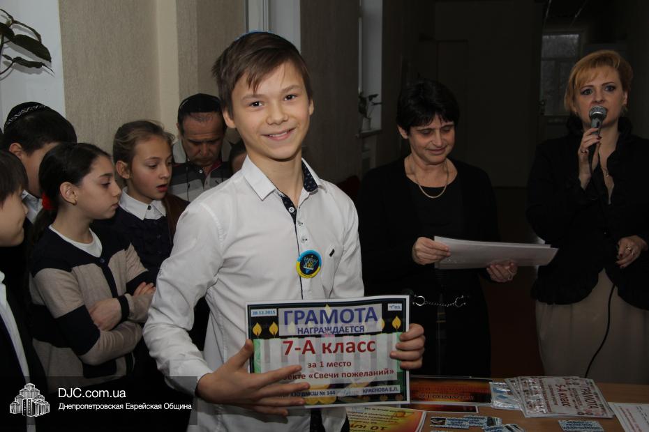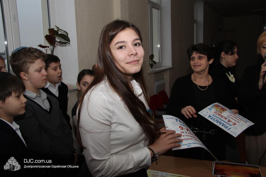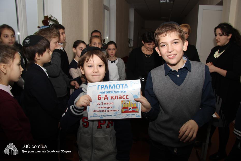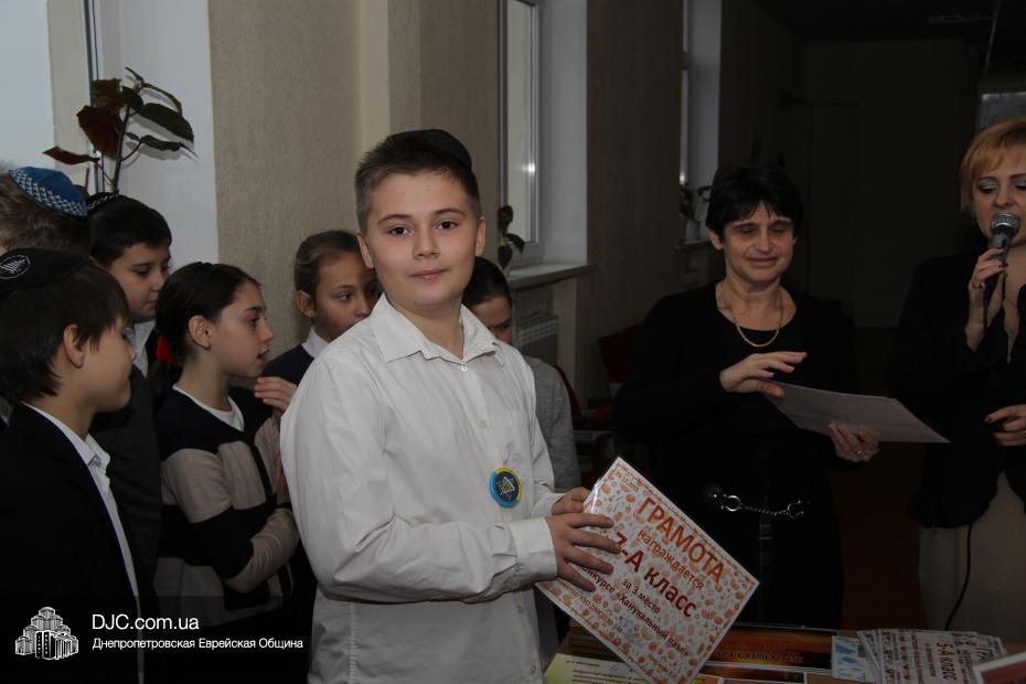 На общешкольном командном конкурсе «Классная ханукия» были вручены награды только за II место – 6-А и III место – 9-А, так как победитель представляет младшую школу, и замечательный 2-А получил свою награду позже.