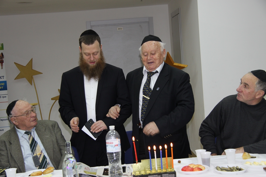 Также ветеранов спортивного движения Украины поздравил председатель Совета евреев-ветеранов и участников боевых действий, полковник в отставке Соломон Киселевич Флакс, а затем активист общины Залман Бухиник преподнес всем участникам мероприятия ханукальный подарок – праздничную Ханукию с набором свечей.