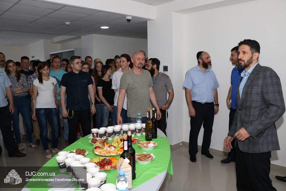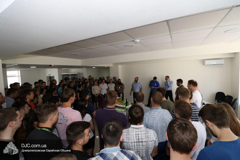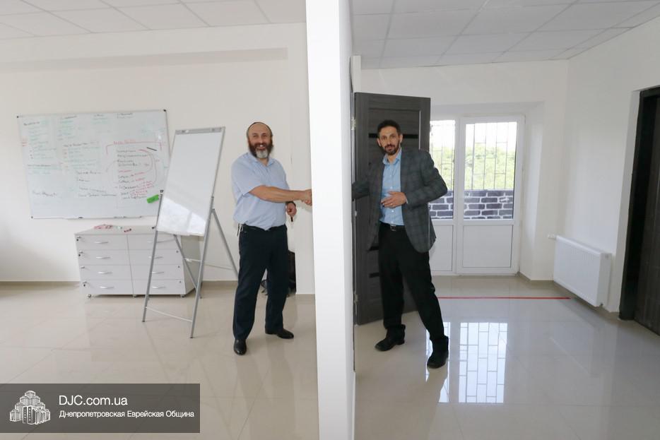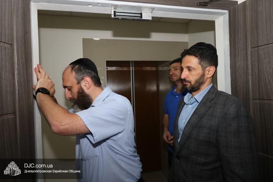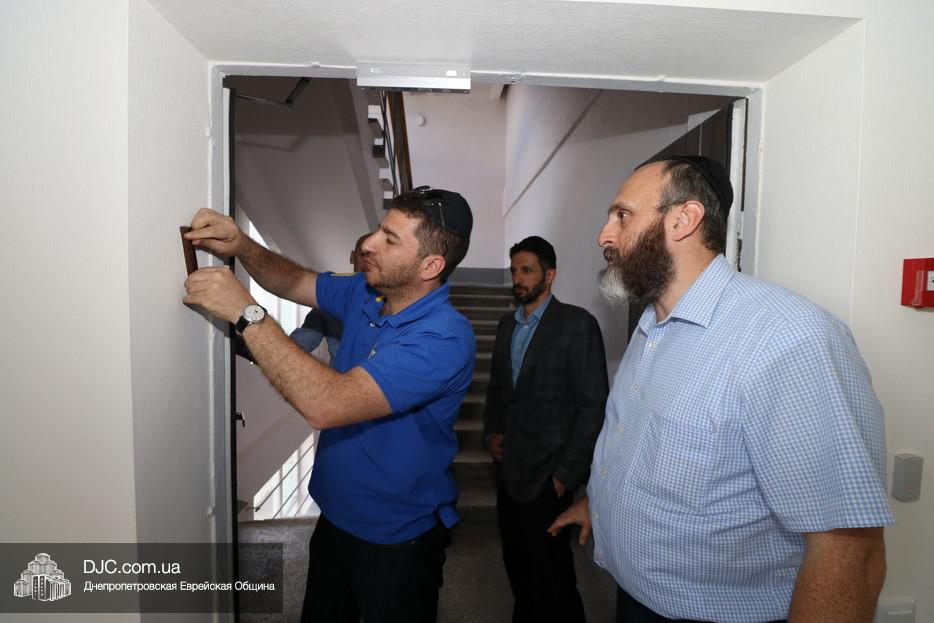 Церемонию прикрепления мезузы провели директор еврейской общины Днепра Зелиг Брез и большой друг и вдохновитель проекта Шмуэль Кацев. Затем почетные гости, помогающие поддерживающие программу, осмотрели просторные помещения в современном стиле, где уже работают десятки выпускников курсов, которые община, «ОРТ-Днепр» и Яков Лившиц начали и успешно проводят в «Меноре».