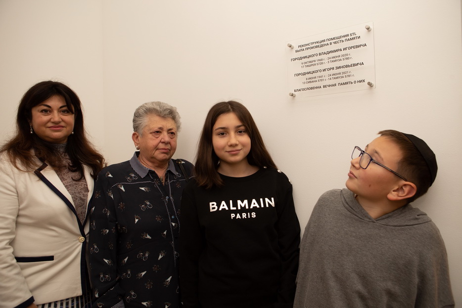 Затем честь открыть памятную доску в честь реконструкции обновленного офиса была предоставлена семье Городницких, меценатам проекта. «Shiurey Torah Lubavitch» искренне благодарит «Бриллиантового Партнера фонда» Татьяну Городницкую и ее семью, благодаря щедрой помощи которых стала возможна реализация данного проекта, посвященного памяти Владимира и Игоря Городницких, пусть будет вечна память о них. Теперь памятная табличка с их именами встречает всех гостей офиса STL при входе», – отметил на церемонии Дан Макогон, и вручил уникальные именные карточки STL с открытым доступом в главный офис организации.