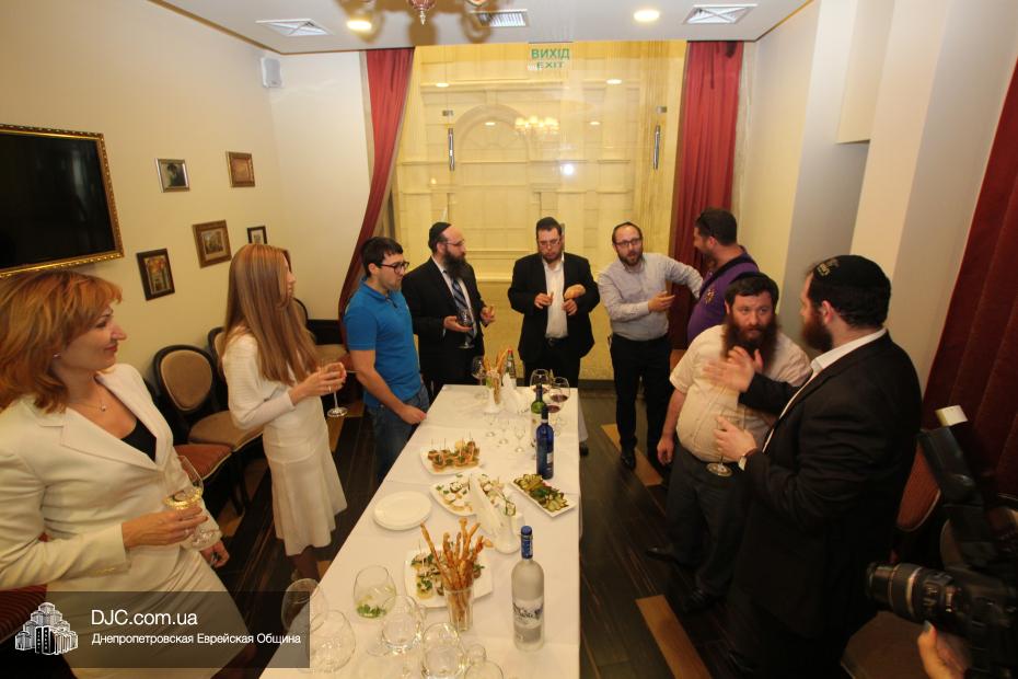 Участниками и почетными гостями церемонии стали уважаемые члены еврейской общины Днепропетровска, которые поздравили владельца «Mendi’s», известного кошерного ресторатора Менахема-Мендела Гольдшмита и его супругу Ривку с этим важным событием.