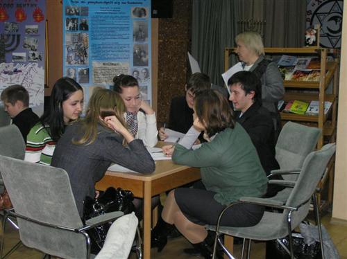 Волонтеры, сотрудники «Хеседа Хана» и сотрудница Всеукраинского Центра изучения Холокоста «Ткума» — Светлана Ивановна Поддубная встречались со студентами ВУЗов, со учениками школ и гимназий, чтобы донести информацию о «фабриках смерти», которые навсегда останутся в истории зловещим символом фашизма.