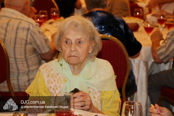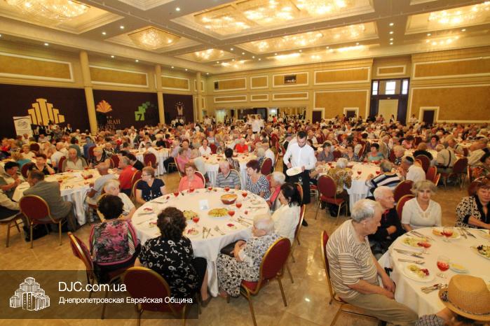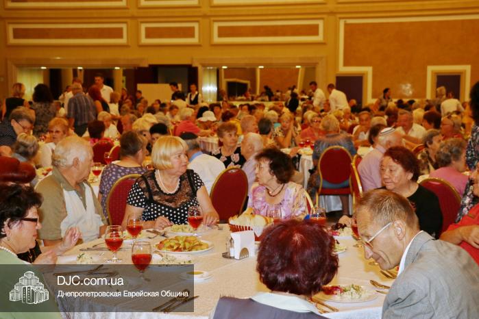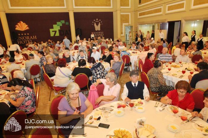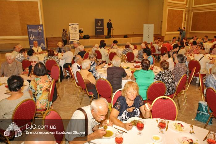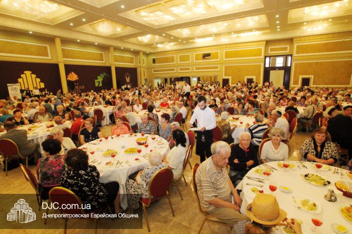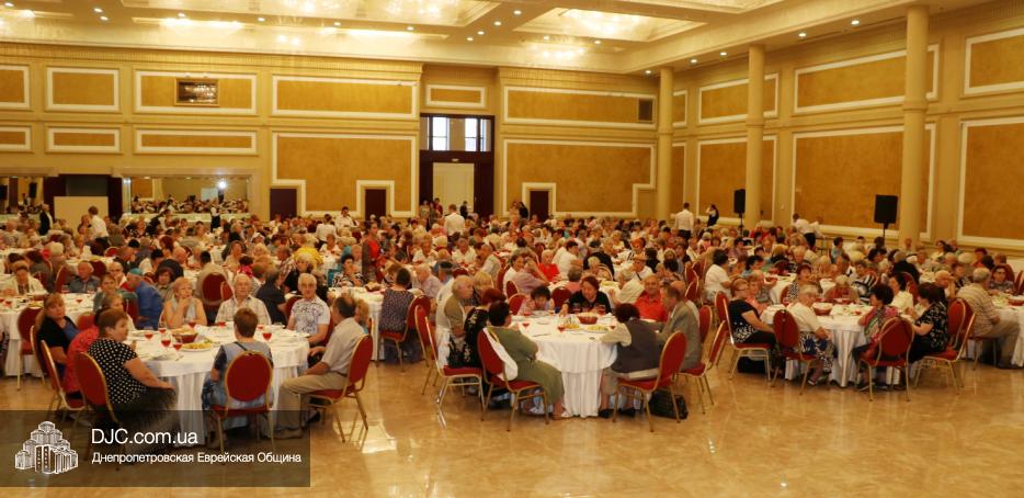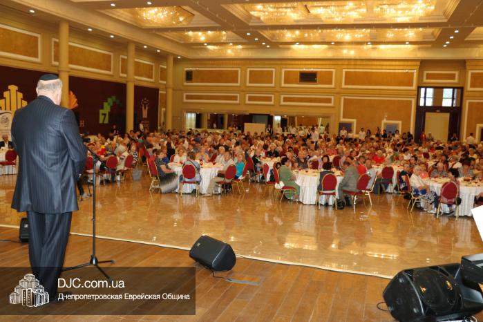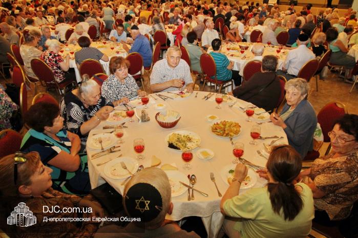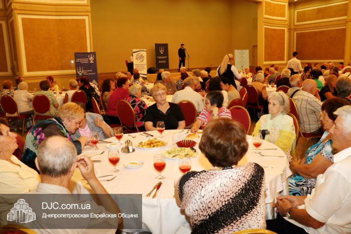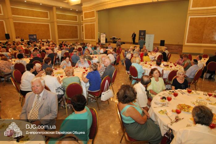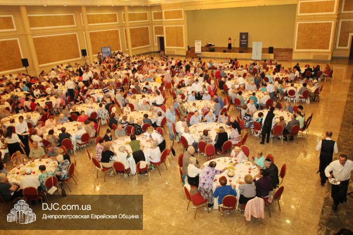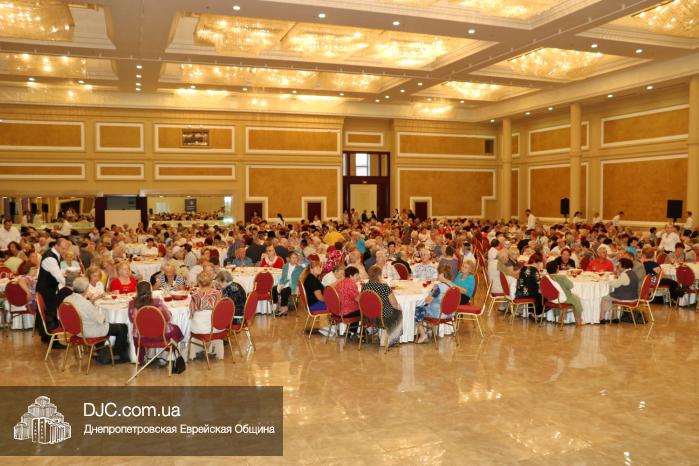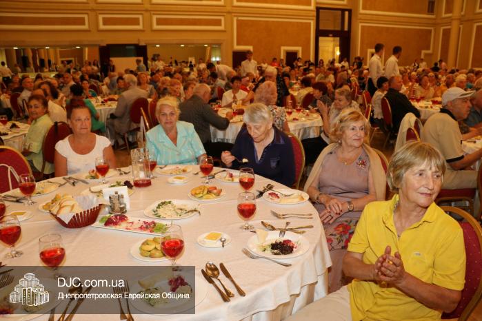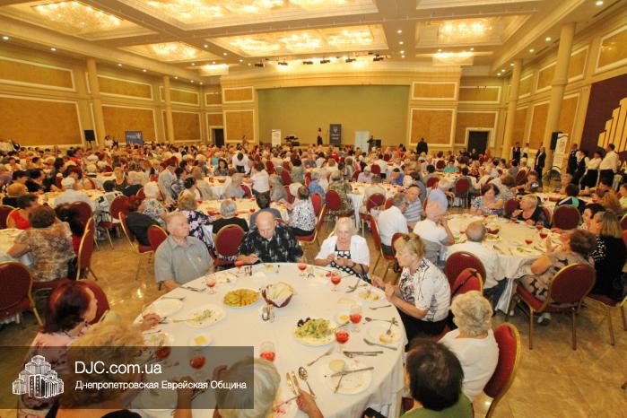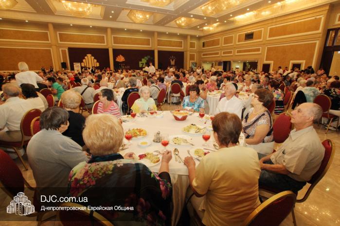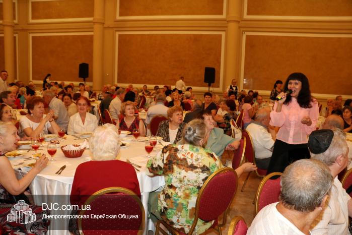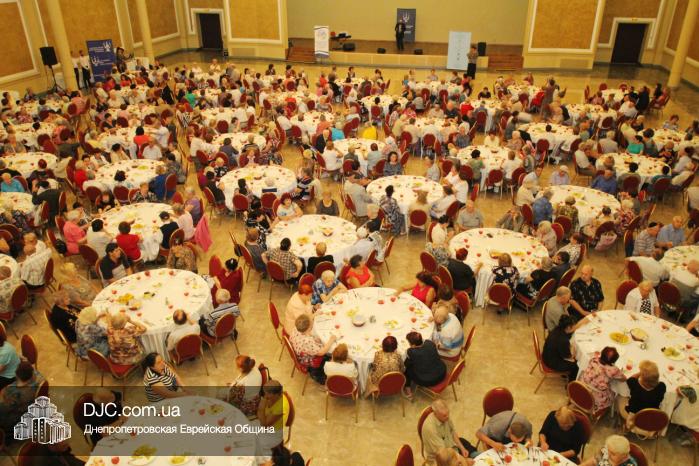 В зале были сервированы большие столы, ибо кроме концерта, предусматривалась еще и трапеза, и не символическая, а настоящий плотный еврейский праздничный обед, с салатами, первым, вторым, разнообразными закусками и, конечно же, сладким – традиционными яблоками и медом. Полакомиться праздничным угощением смогли свыше пятисот пожилых людей.