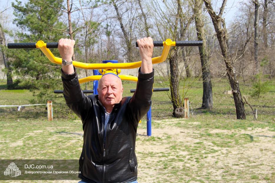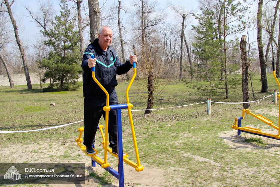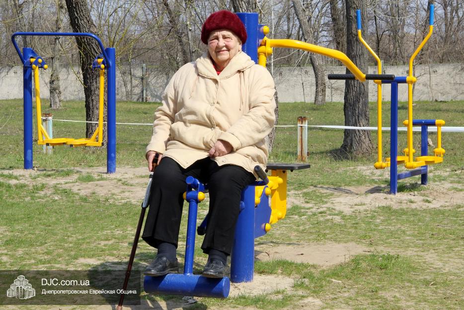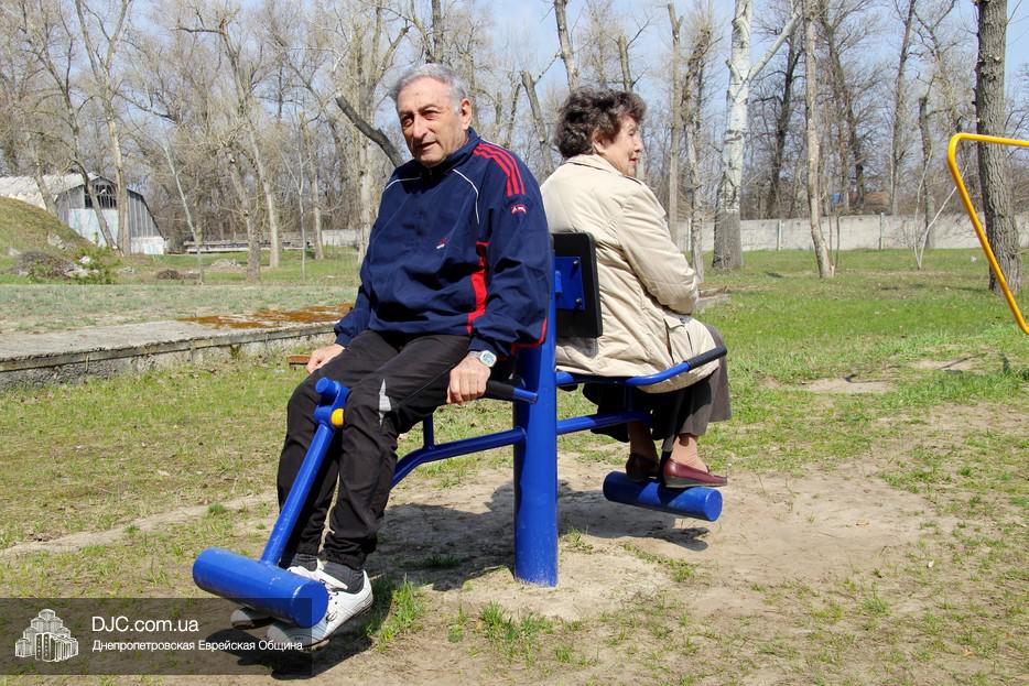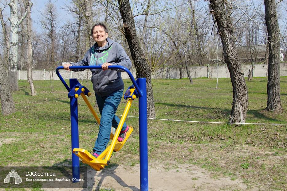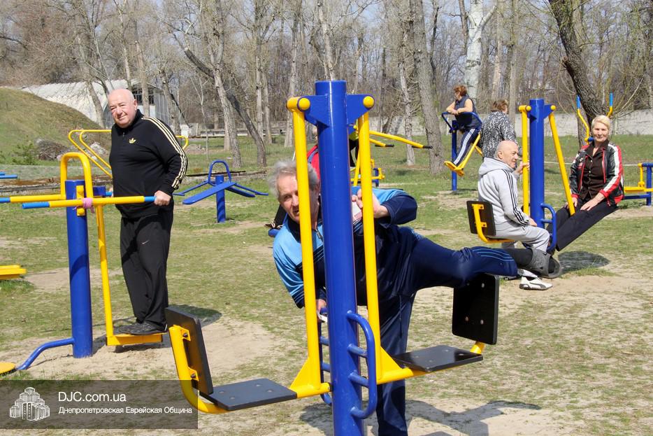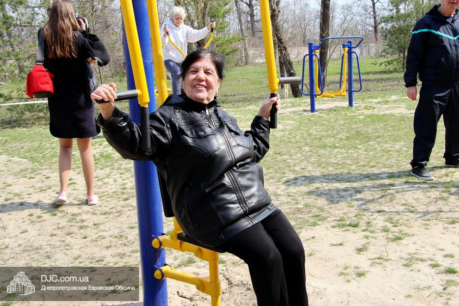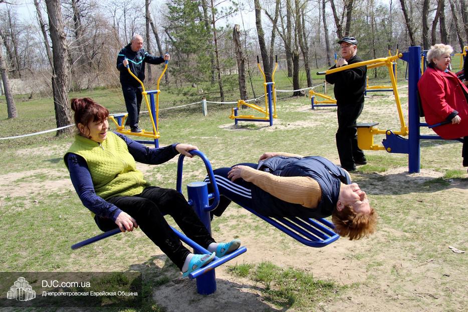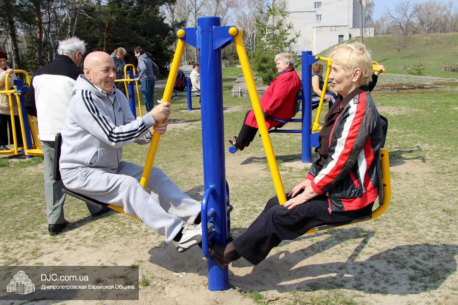 Огромное удовольствие пожилым людям доставили разнообразные тренажеры на свежем воздухе, расположенные в парковой зоне лагеря «Золотий вік», тем более, что занятиям благоприятствовала весенняя погода и очарование пробуждающейся природы.
