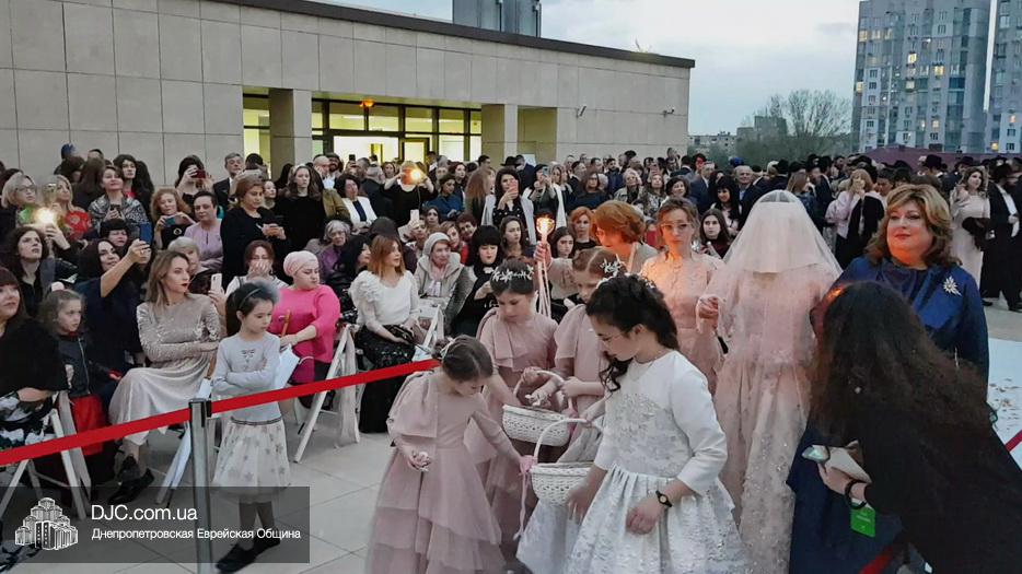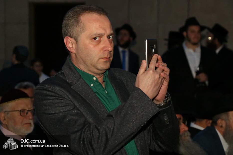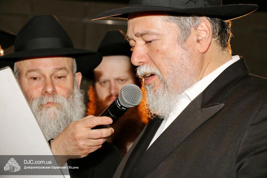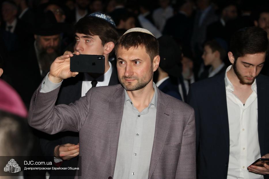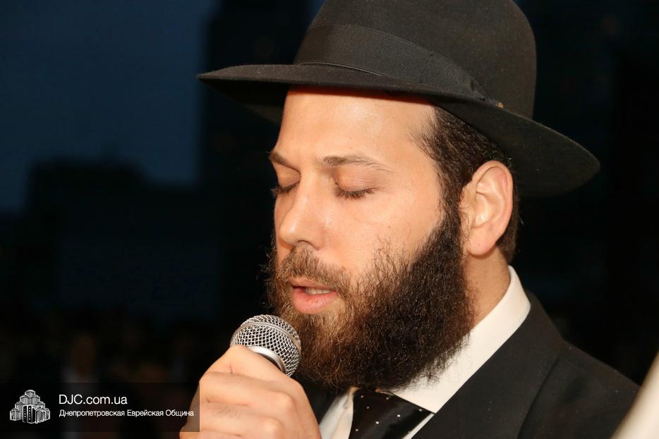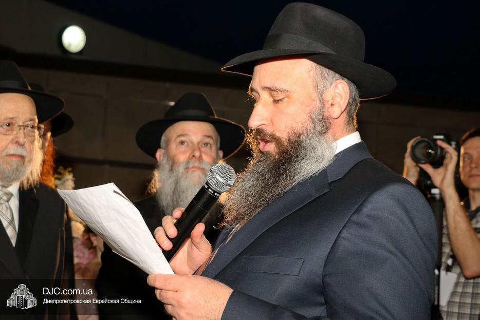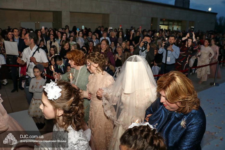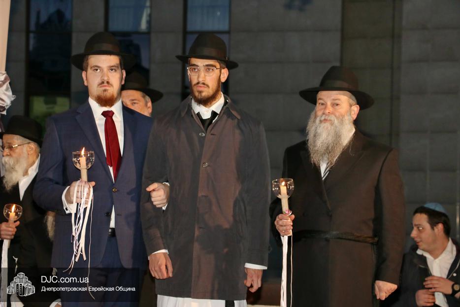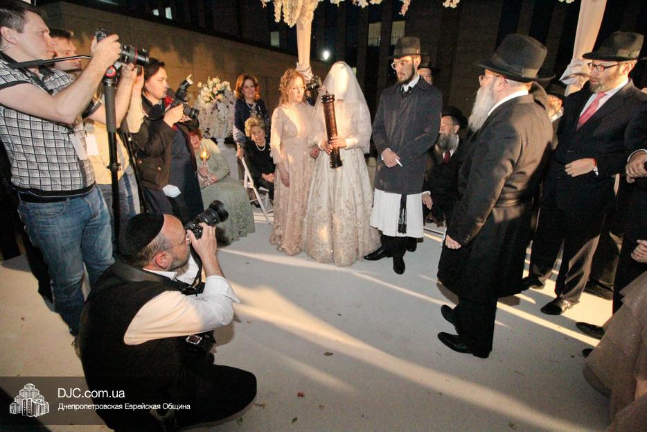 Затем невесту семь раз обвели вокруг жениха, стоящего под Хупой, под звуки традиционного гимна «Арба Бавот», далее свадебный гимн «Ми Адир» исполнил муж сестры невесты раввин Йосеф Ицхак Кляйн; письмо-благословение Любавического Ребе прочел один из самых известных лидеров Всемирного движения «ХаБаД Любавич», глава службы посланников во всем мире, руководитель Всемирного центра еврейского образования «Мерказ Лионей Хинух», раввин Мойше Котлярский; а перевод прочел Председатель Совета «Федерации еврейских общин Украины», Президент МГПИ «Бейт Хана», член Попечительского Совета еврейской общины Днепра, раввин Меир Цви Стамблер.