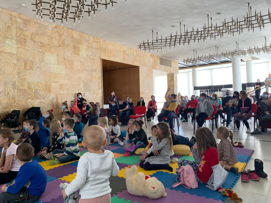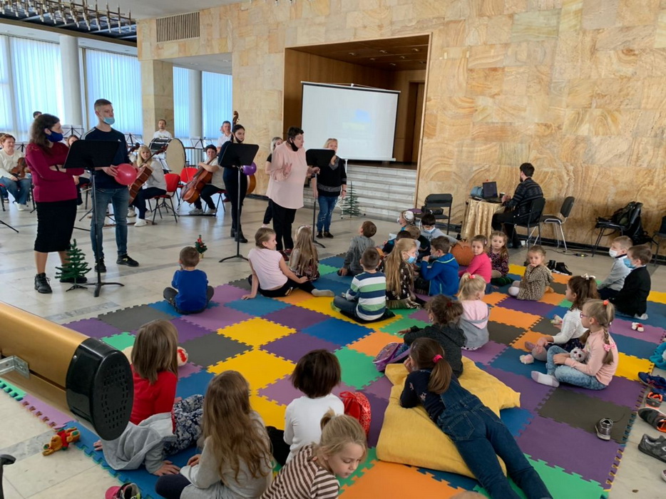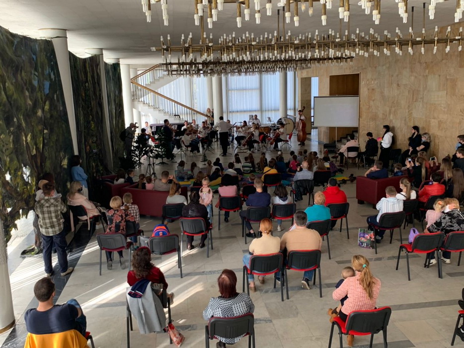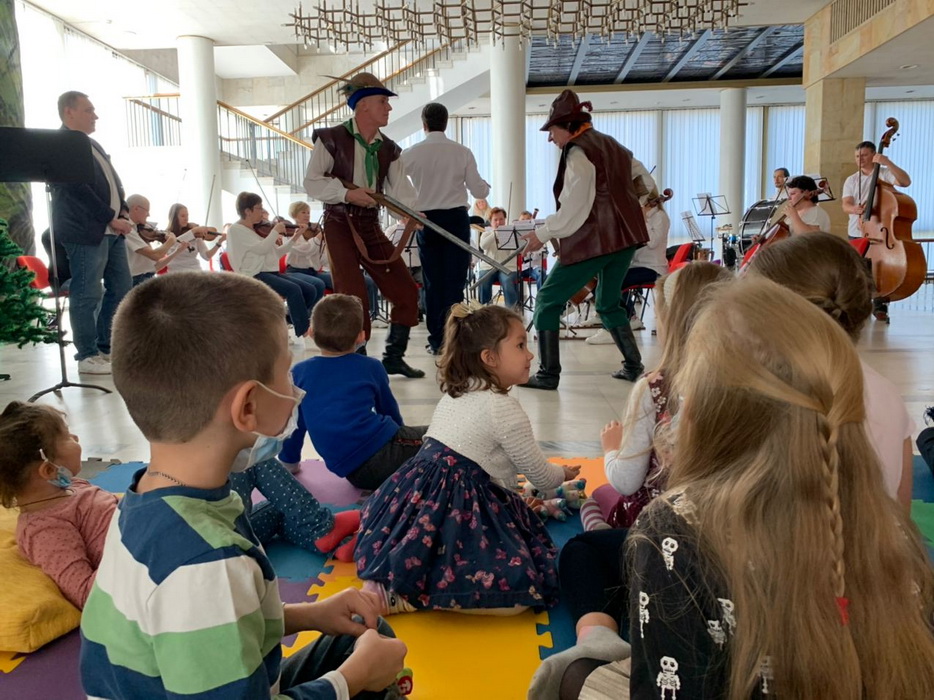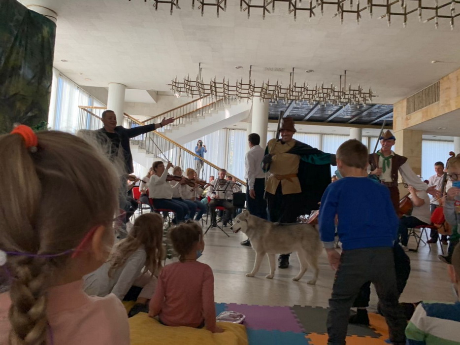 Татьяна Каплунская и главный дирижер оперного театра Назар Яцкив подготовили совершенно необычную интерпретацию симфонической сказки Сергея Прокофьева «Петя и волк». Само представление проходило не в зале, а в фойе второго этажа, где были установлены стулья, диваны и мягкое напольное покрытие, чтобы юные зрители были как можно ближе к музыкантам и артистам, чтобы они чувствовали себя максимально включенными, участниками, а не наблюдателями.