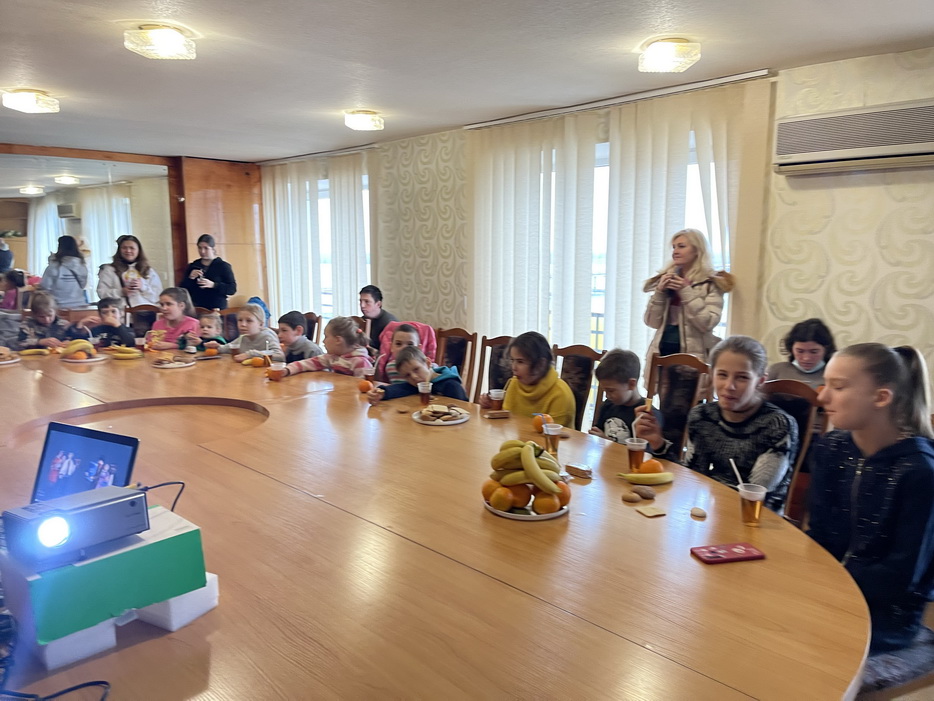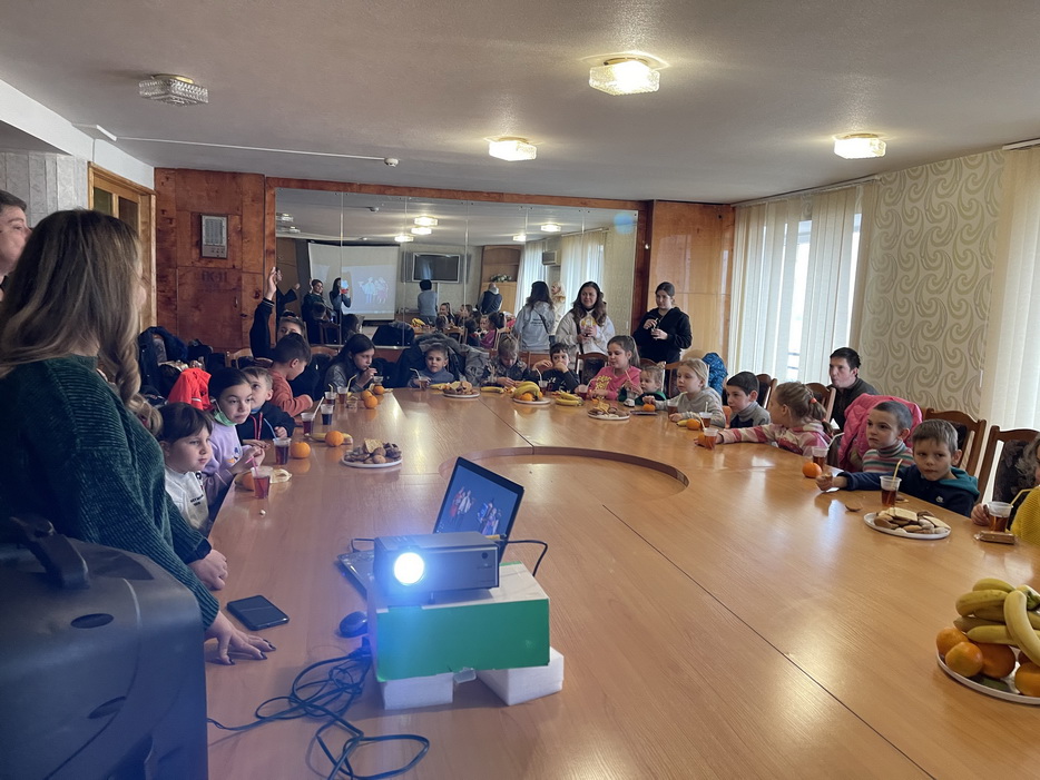 После того как все было упаковано, волонтеры решили немного развлечь детей и показали увлекательные еврейские мультфильмы, которые, конечно же, несли образовательный и добрый контент, при этом не забыв обсудив важность добрых дел каждый день.