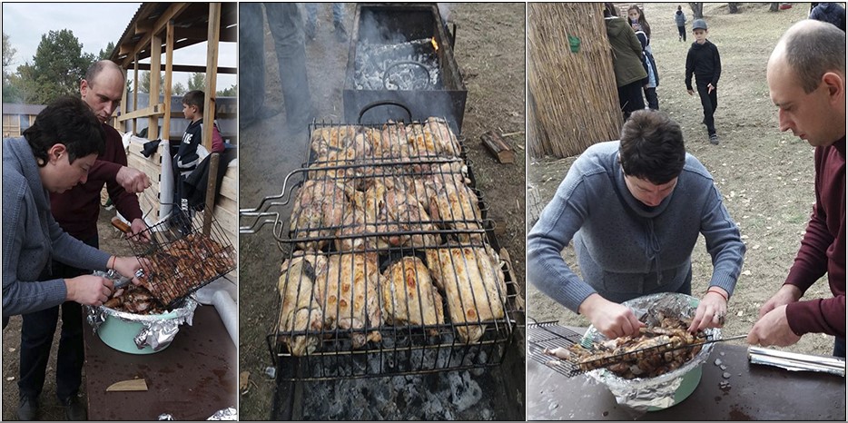 Как только сукка была готова, а дети всласть настрелялись и набегались, все воссоединились в шалаше, и Ян Львович Сидельковский рассказал о празднике Суккот, помог выполнить заповедь «нетилат лулав» и пребывания в сукке. К этому времени было готово вкуснейшее мясо на решетке и картошечка, закипел самовар и все заверте…
