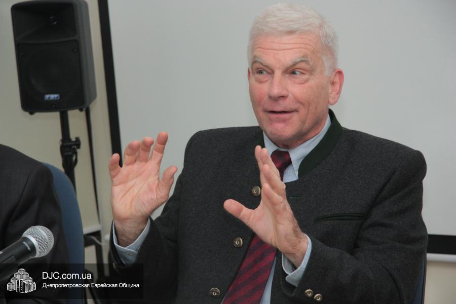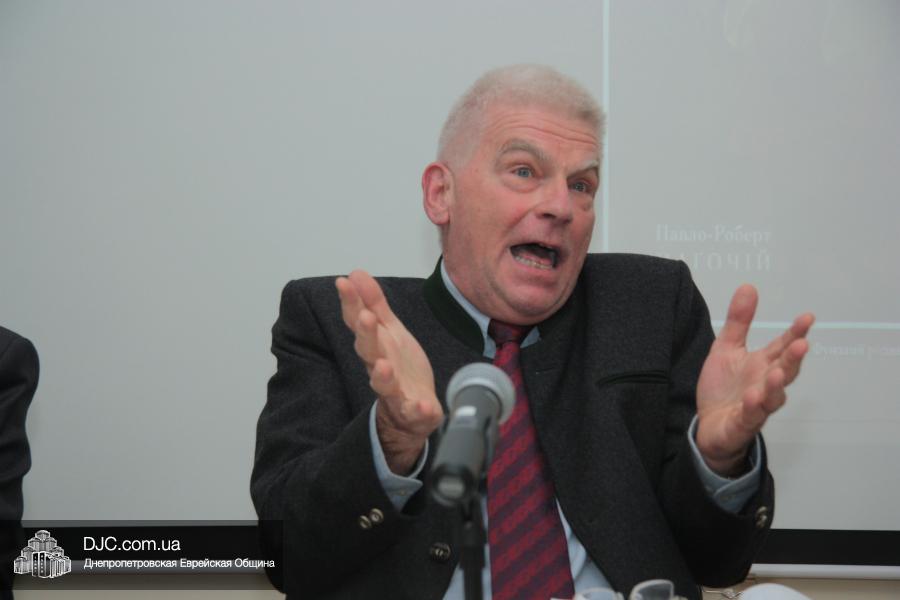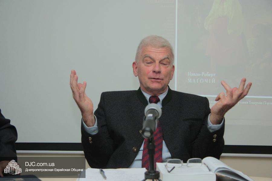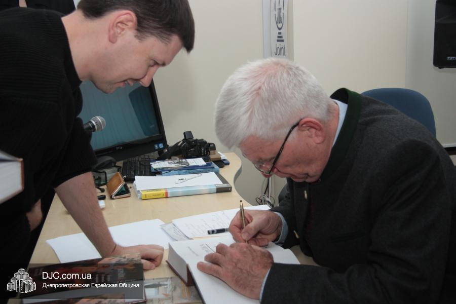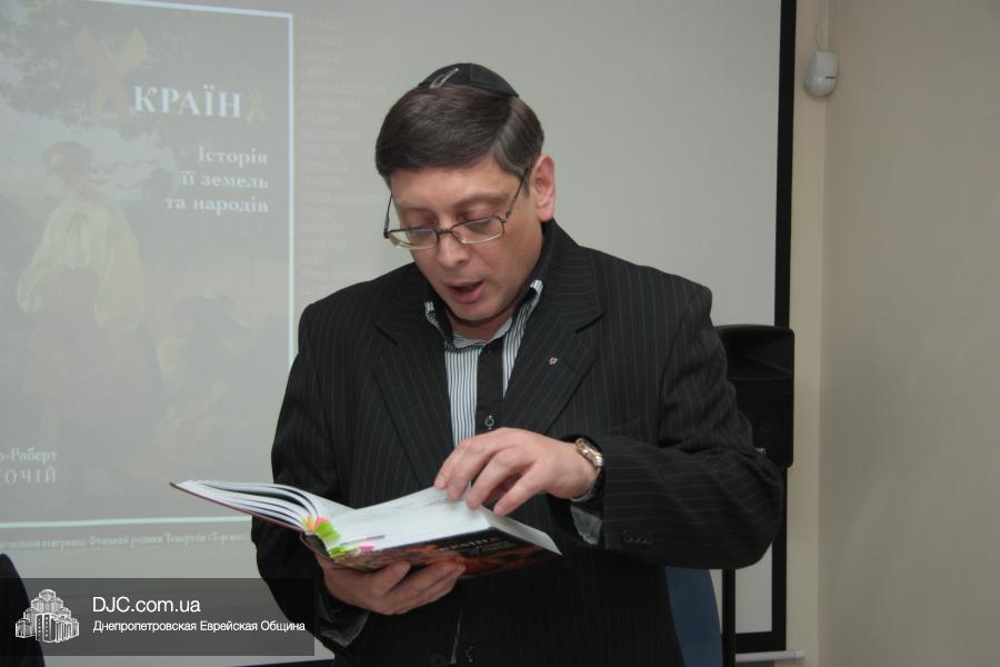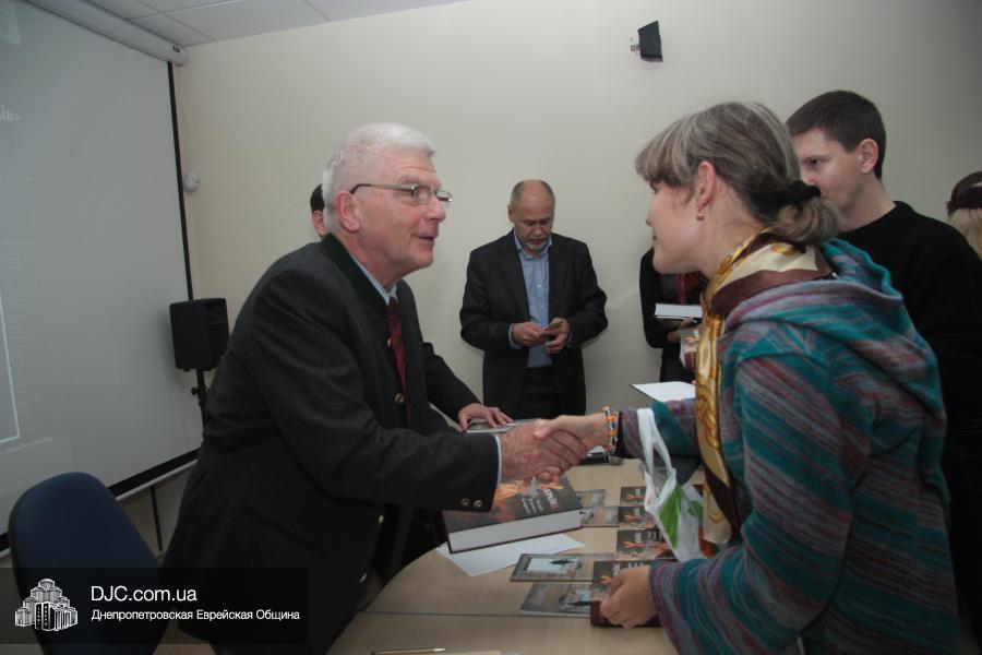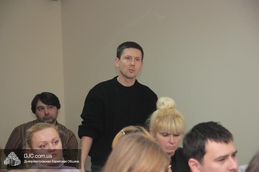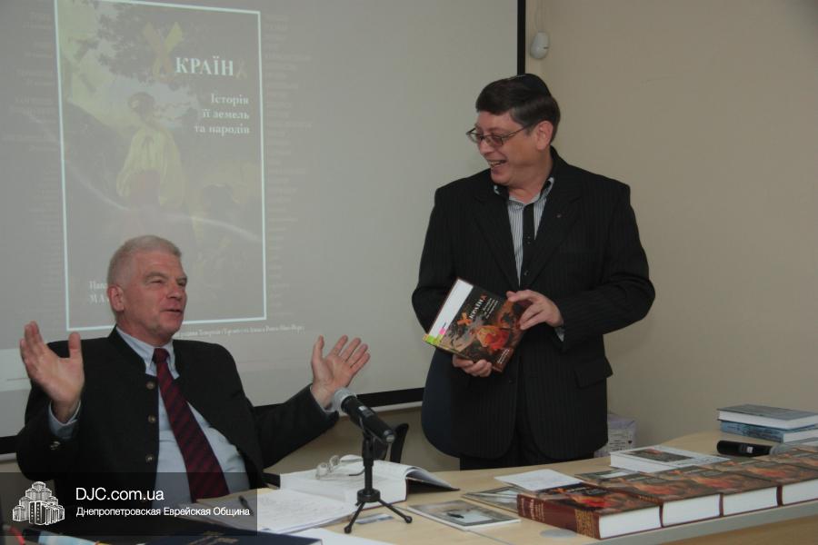 В качестве модератора встречи канадского ученого и украинского издателя с участниками «Исторического клуба» выступил директор УИИХ «Ткума» и музея «Память еврейского народа и Холокост в Украине» доктор Игорь Щупак. Участниками встречи, преимущественно, стали преподаватели-историки Днепропетровского национального университета имени О. Гончара.