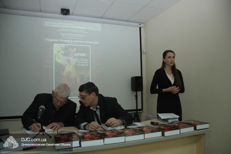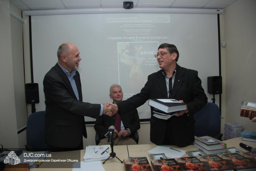 На очередном заседании «Днепровского исторического клуба», совместного проекта УИИХ «Ткума» и Института социальных исследований, состоялась презентация украинского издания монографии «Украина: история ее земель и народов», которую провели автор – американо-канадский историк, президент Всемирного конгресса русинов, профессор Пол Роберт Магочий (Paul Robert Magocsi), и Валерий Падяк, основатель и директор ужгородского издательства «Видавництво Валерiя Падяка», в котором монография была выпущена в свет на украинском языке.