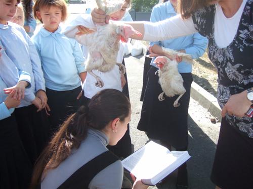 Как и положено по еврейской традиции, под руководством своих наставниц девушки произнесли благословения над курицами и прочитали соответствующие тексты, освященные еврейской традицией.