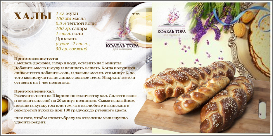 Организаторы рекомендуют подготовиться заранее – приготовить тесто, цдоку, фломастер, бумагу и большие салфетки, также проект «Колель Тора для женщин» распространяет рецепт теста для халы.
