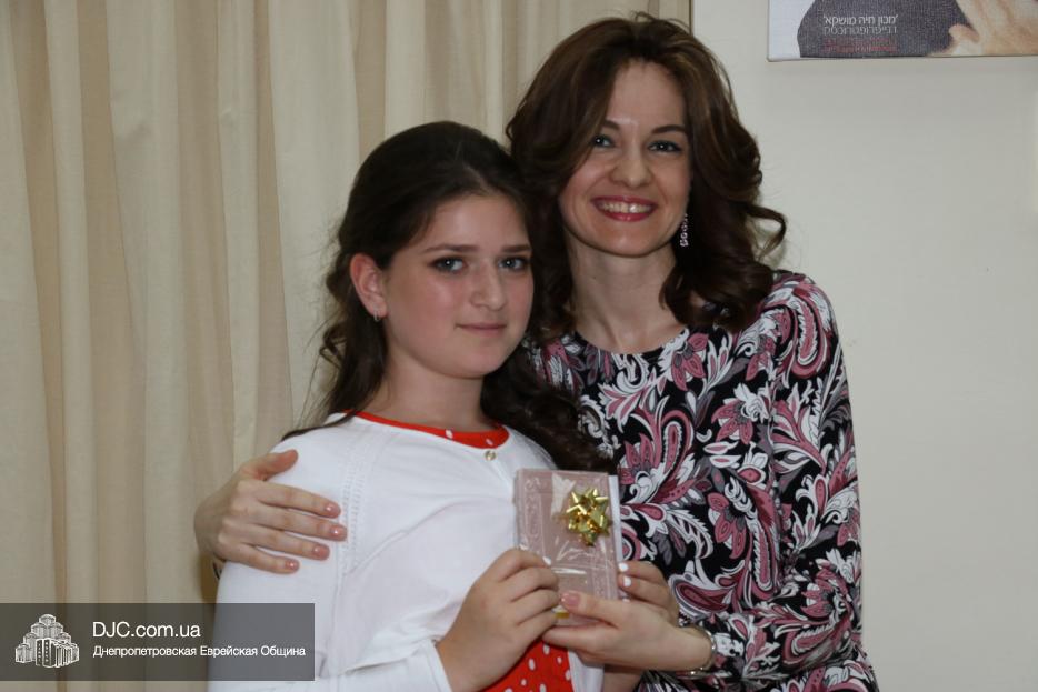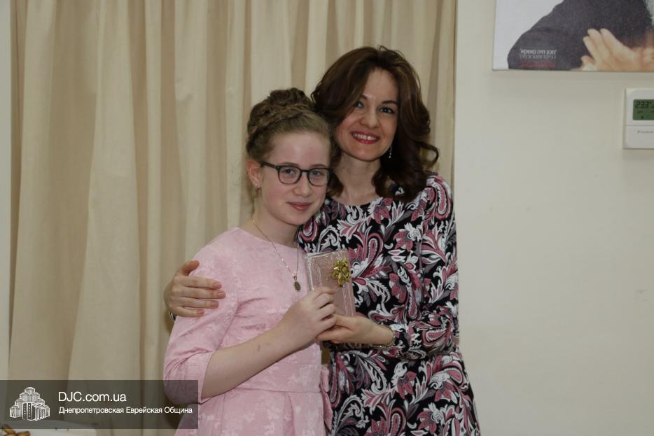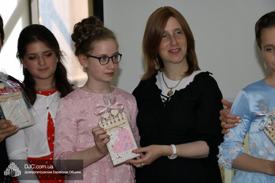 Кульминацией праздника стало поздравление директора махона Рахель Мильман и вручение ею каждой девочке красиво оформленного именного сидура «Тегилат Гашем», а в свою очередь девочки вручили подарки своим мамам, а после того, как прозвучали все напутствия и поздравления, наступило время для вкусного и кошерного угощения.