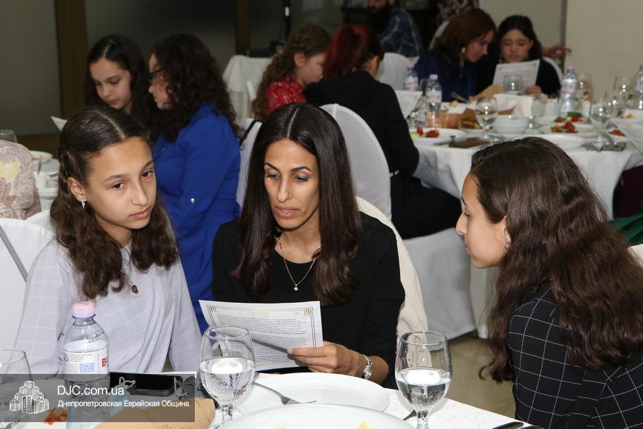 Большое внимание в ходе бат-мицвы было уделено отношениям родителей с детьми – вместе с мамами девочки изучили отрывок о роли и значении Ребе для еврейского народа, а затем с удовольствием играли в еврейскую версию популярной игры «Quiz» на платформе «Kahoot», с азартом отвечая на своих мобильных устройствах на вопросы, которые появлялись на большом экране. Победительницы получили замечательные призы – за первое место сертификат на 500 гривен в «R-Cafe», за второе – сертификат на 200 гривен, а занявшая третье место получила кошерную шоколадку.