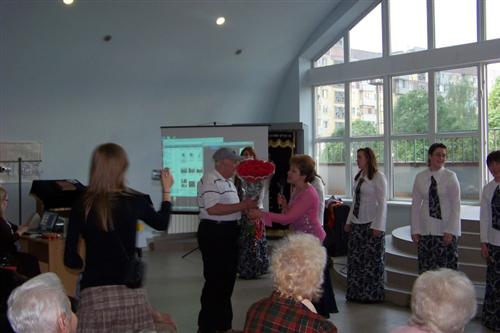 От имени жильцов Дома студенток горячо поблагодарил председатель совета жильцов Александр Гуревич, участник боевых действий, бывший в детстве узником гетто. Он выразил особую благодарность заместителю директора «Бет Ханы» по воспитательной работе Виктории Пинькас, которая прилагает особые усилия для воспитания студенток в подлинно еврейском духе уважения к старшим, а также тем руководителям творческих коллективов «Бет Ханы», которые подготовили столь замечательный концерт: хормейстеру Милитине Мягковой, концертмейстеру Ларисе Шелковой, хореографу Наталье Кудрицкой.