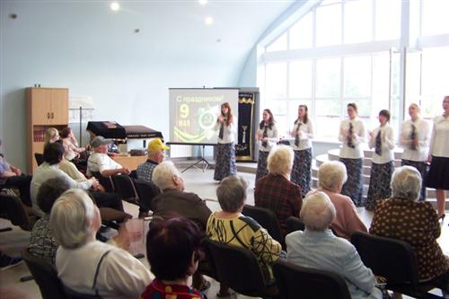В дни празднования 65-ой годовщины великой Победы студентки «Бет Ханы» посетили жильцов Дома для пожилых людей «Бейт Барух» с большим праздничным представлением, посвященным военной тематике.