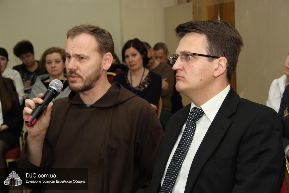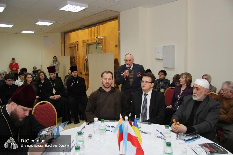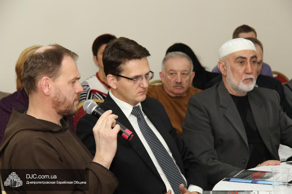 В работе круглого стола приняли участие: Правящий архиерей Днепропетровской епархии Украинской Православной Церкви, епископ Днепропетровский и Криворожский Симеон; председатель Днепропетровской мусульманской общины Рамзан Курбанов и канцлер Донецкого экзархата Украинской греко-католической церкви Василь Пантылюк, настоятель Римско-католического прихода в Днепропетровске Збигнев Савчук. Армянскую церковь представлял на встрече Грачия Задикян, один из молодых лидеров и руководителей культурного центра, а кроме того, в работе круглого стола принимали участие Генеральный консул ФРГ Детлеф Вольтер и вице-консул Генерального консульства Республики Польша Ян Здановский. Также модератор встречи директор УИИХ «Ткума» и музея «Память еврейского народа и Холокост в Украине» доктор Игорь Щупак предложил занять место за круглым столом Василию Костицкому, известному в Украине своей деятельностью в качестве председателя «Национальной экспертной комиссии по морали». Слушателями дискуссии за круглым столом были представители широкой общественности и участники семинара для учителей, проводимого УИИХ «Ткума».