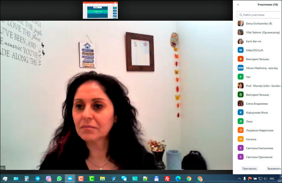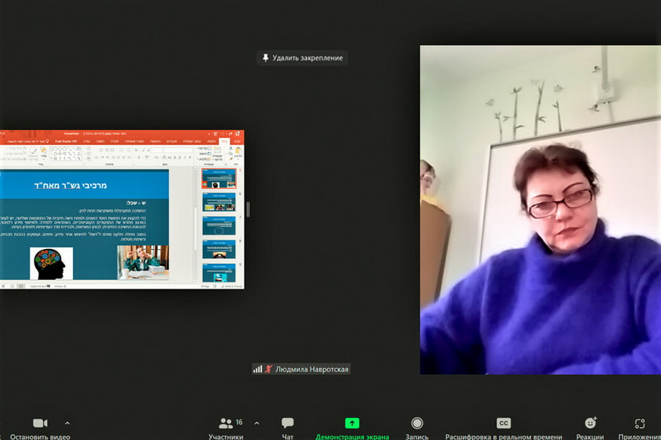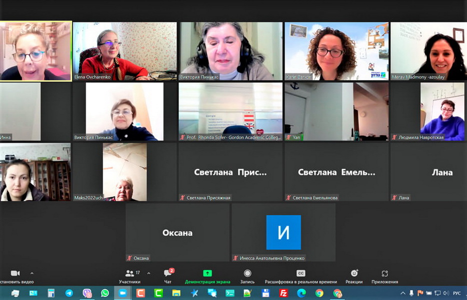 В онлайн-конференции также приняли участие декан факультета специальной педагогики Педагогической академии Гордона Ифат Тадмор (Yifat Tadmor), директор Международного центра доктор Ронда Софер (Dr. Rhonda Sofer, Director of International Center at Gordon College of Education- Haifa) и координатор многофункционального проекта «Кегила» Ян Львович (Яков Исроэль) Сидельковский, а переводчиком этой встречи с иврита стала София Коган».
