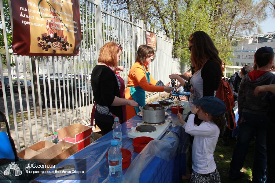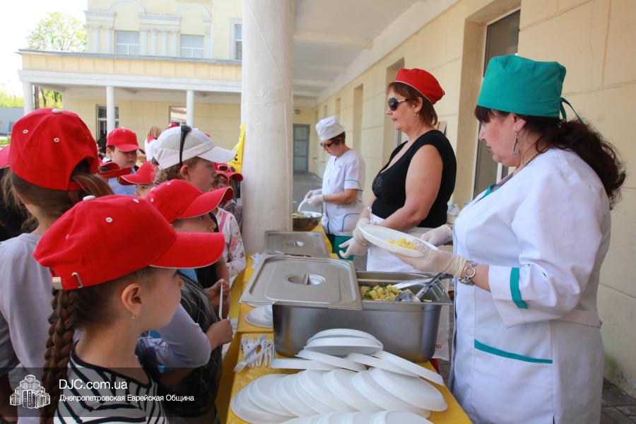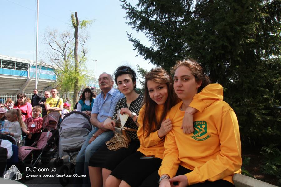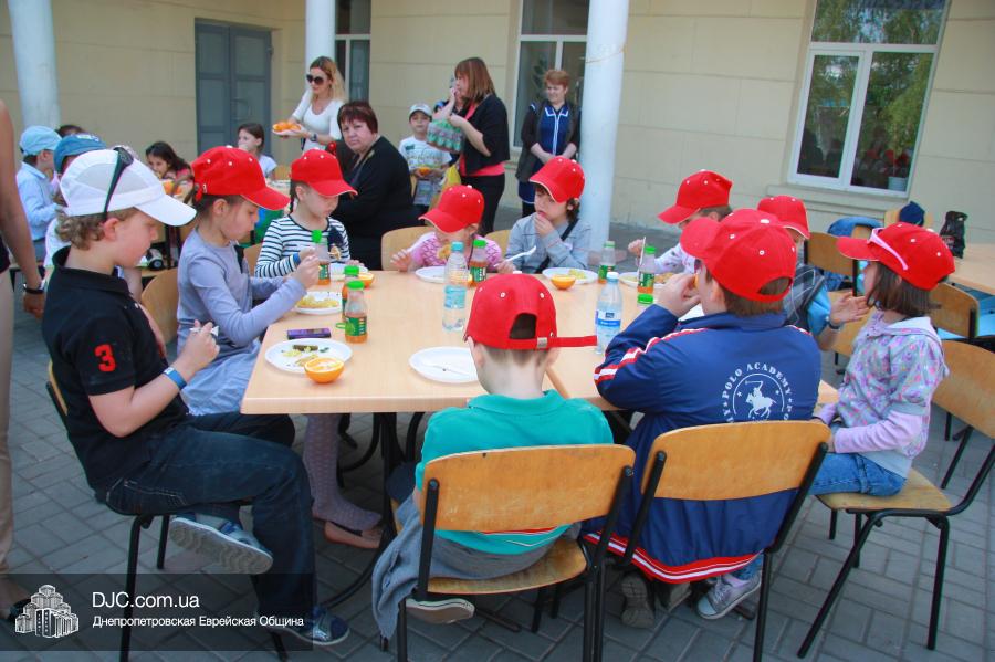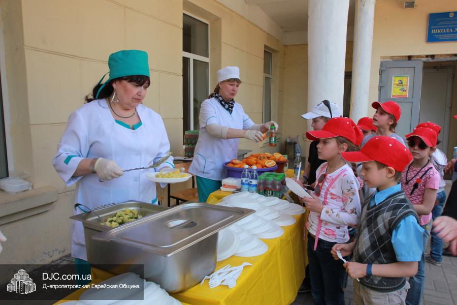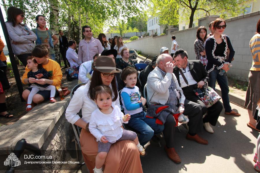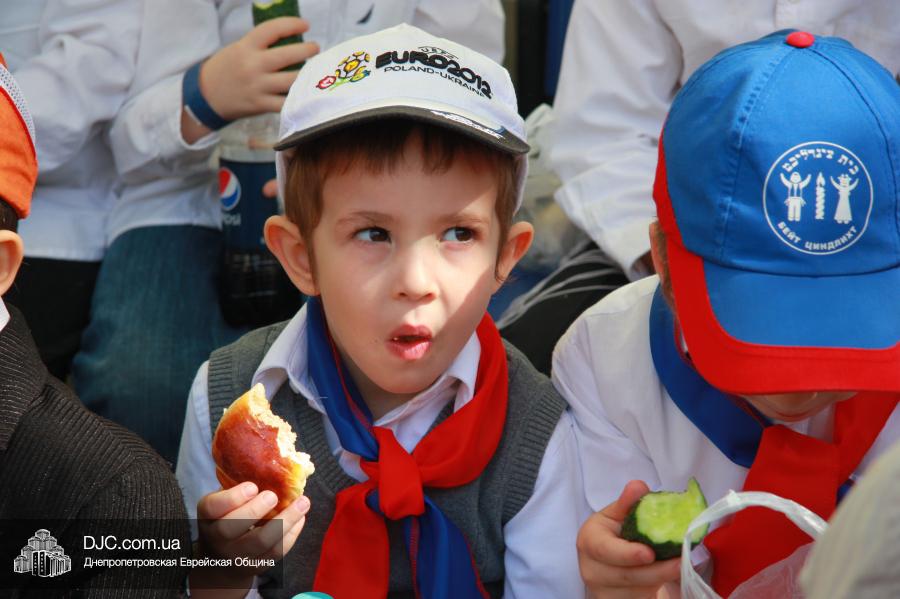 Перед началом праздничного концерта все участники шествия были приглашены на праздничный ланч на свежем воздухе, с кошерными мясными и овощными блюдами, питами и прохладительными напитками. После получасового отдыха раввин школы Шломо Терешкевич пригласил всех к эстрадной площадке, в которую превратилась терраса перед главным входом в школьное здание.