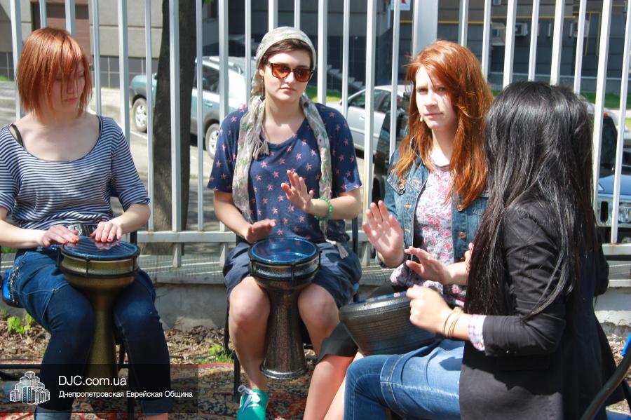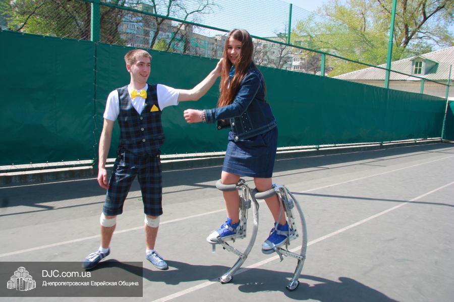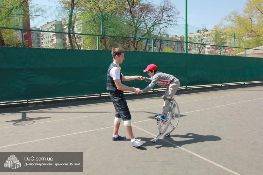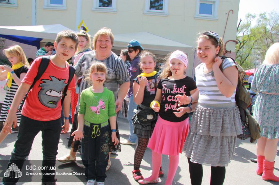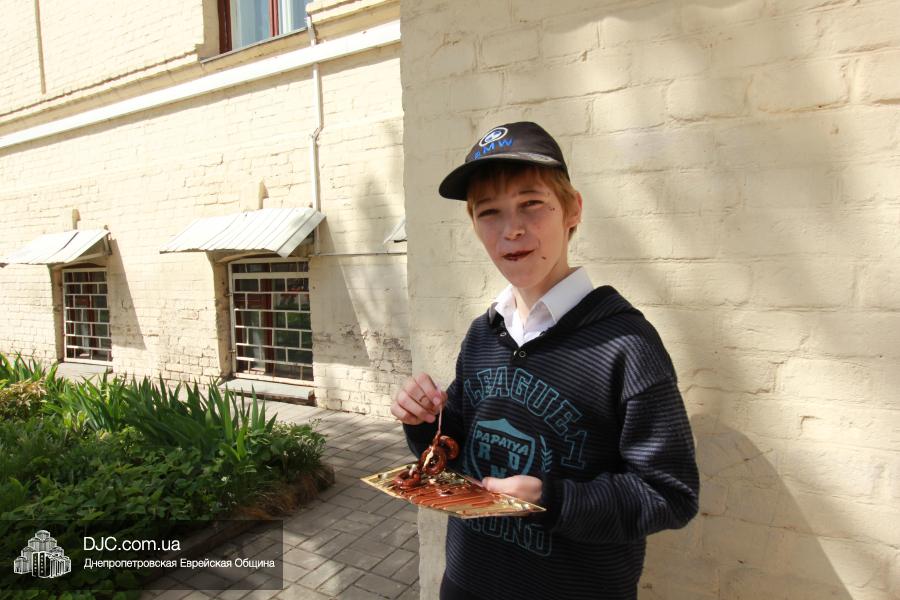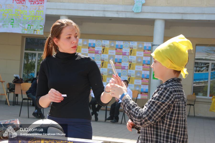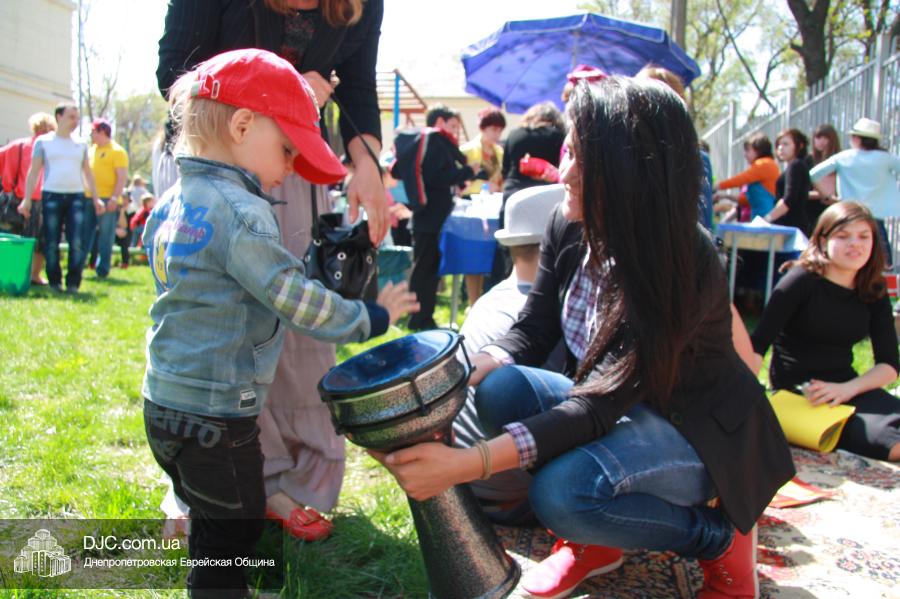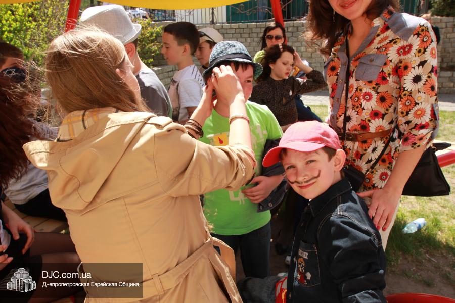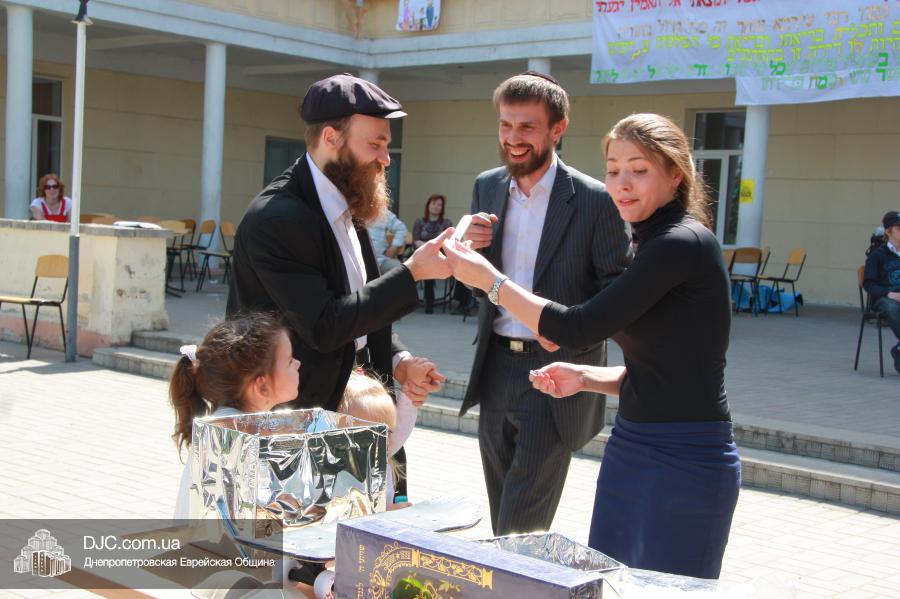 Затем последовало выступление сводного оркестра барабанщиков – воспитанников днепропетровской иешивы, которые подготовили к празднику несколько композиций, сыгранных ритмично и слаженно. Продолжили праздник традиционные «12 Псуким», которые произнесли также ученики иешивы-ктана. Чтение псуким дружно поддержали все гости мероприятия. Воспитанницы «Бейт Циндлихт» продолжили концерт танцевальным номером, который они подготовили с помощью своих преподавателей, а завершил его клоун Шурик – неизменный гость многих детских празднеств, проводимых в еврейской школе.