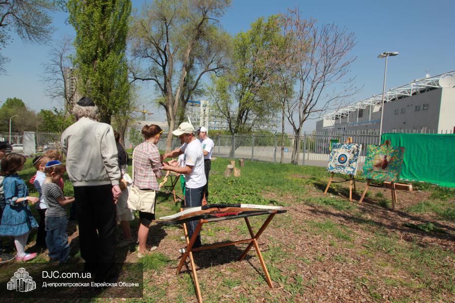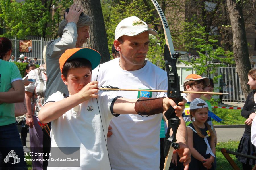 Дети постарше и взрослые учились меткости у профессионалов стрельбы из лука, которые помогали гостям научиться правильно держать лук и выпускать стрелу в цель. Также действовали две музыкальных станции – одна «Караоке», которой руководил учитель школы и шоумен Яков Роговой, а другая «Ритмы Дарбуки» – тоже как бы мастер-класс, где коллектив юных барабанщиц учил желающих «играть» на этом этно-инструменте, а некоторые даже пускались пляс под извлекаемые звуки.