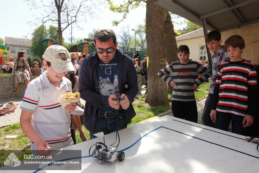 Еврейские школьники старших классов принимали участие в празднестве на Лаг Ба Омер не в качестве гостей станций, а в качестве их ведущих и наблюдателей. Выпускники иешивы приглашали всех мужчин исполнить в этот праздничный день заповедь тфилин, предписанную Торой, а другие старшеклассники – ученики 9-х, 10-х и 11-х классов – следили за порядком на спортивных станциях. А вот учащиеся Ресурсного Технологического Центра ОРТ учили всех желающих управляться с радио-машинками. Этот аттракцион особенно понравился старшему поколению. Взрослые с удовольствием брали в руки джойстик и, прислушиваясь к советам опытных в этом деле школьников, пытались пройти трассу.