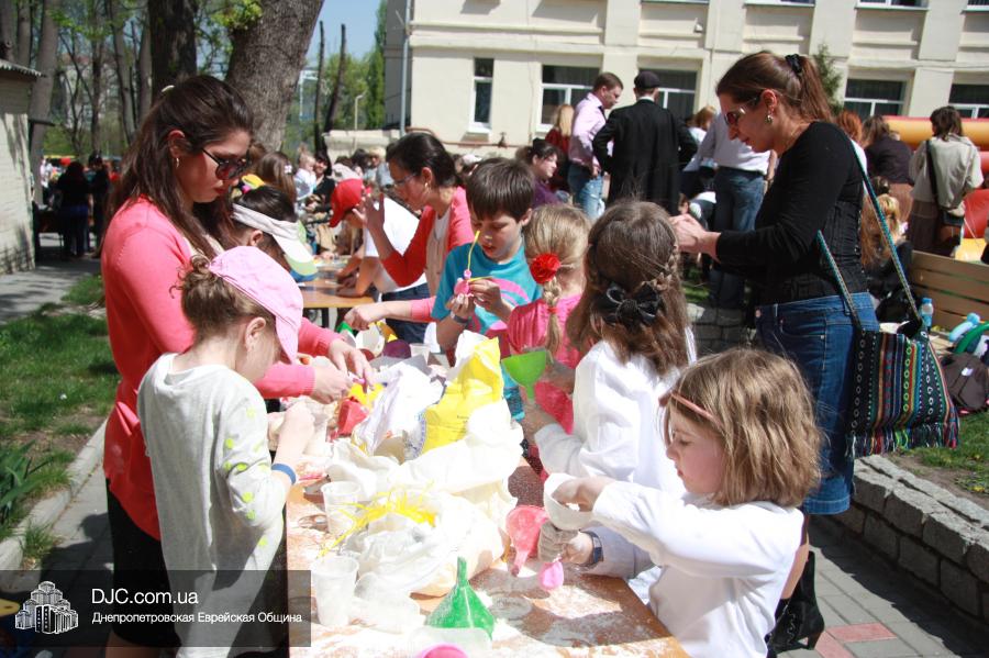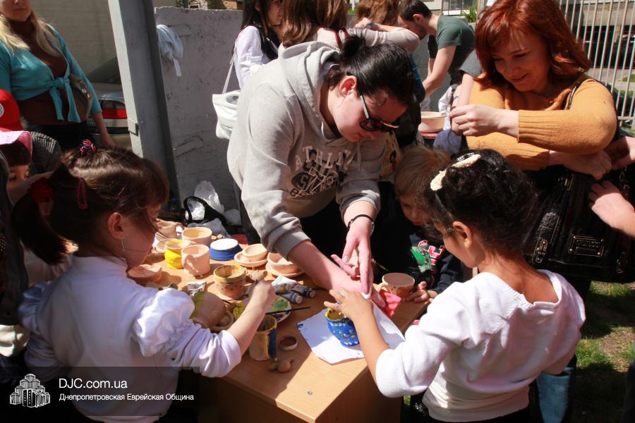 Особой популярностью у детей пользовались станции, где изготавливали сладости – сладкую вату, фрукты и бублики в шоколаде, и целых четыре детских батута, на которых с удовольствием резвилась детвора. Многие малыши также могли попробовать свои силы в искусстве керамики – они учились самостоятельно создавать на гончарном круге глиняные формы и «разукрашивать» уже высохшие фигурки, и принять участие в мастер-классе по изготовлению забавных человечков из маленьких воздушных шариков, наполненных мукой.