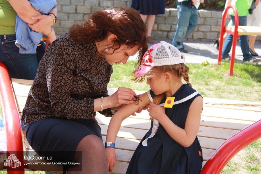 После мастер-классов ребята могли просто поиграть на специально оборудованных детских площадках с горками, рукоходами и качелями, а для родителей были предусмотрены удобные лавочки, сидя на которых можно было наблюдать за малышами. Кроме того, дети с удовольствием бежали на станцию «боди-арт», где можно было разрисовать лица и руки занятными узорами и замысловатыми фигурами.
