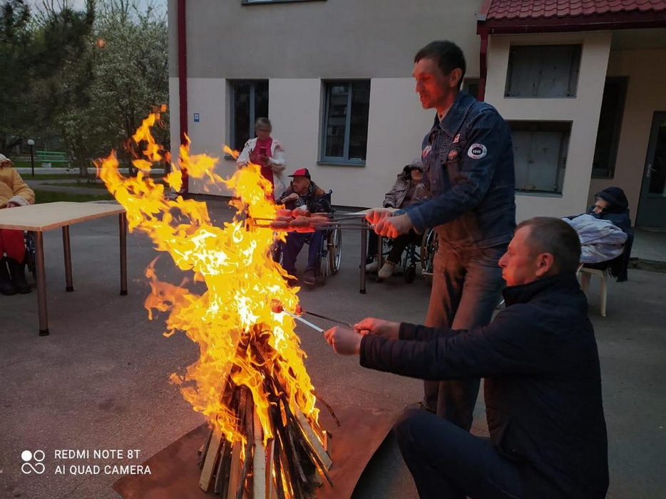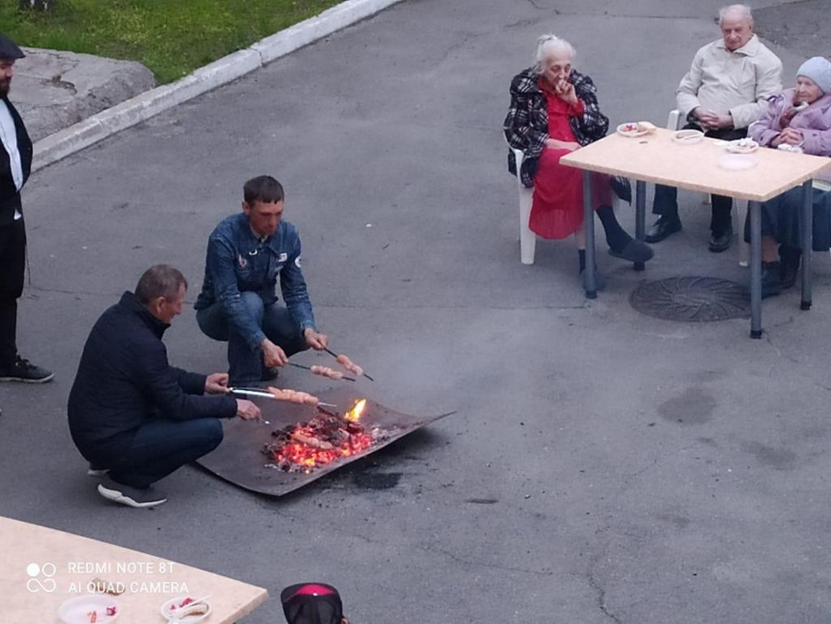В парковой зоне на территории комплекса «Бейт Барух» был зажжен небольшой, уютный костер, вокруг которого под деревьями были расставлены празднично накрытые столы, где, под руководством раввина Дома для пожилых людей Леви Артюшкина, состоялась праздничная трапеза.
