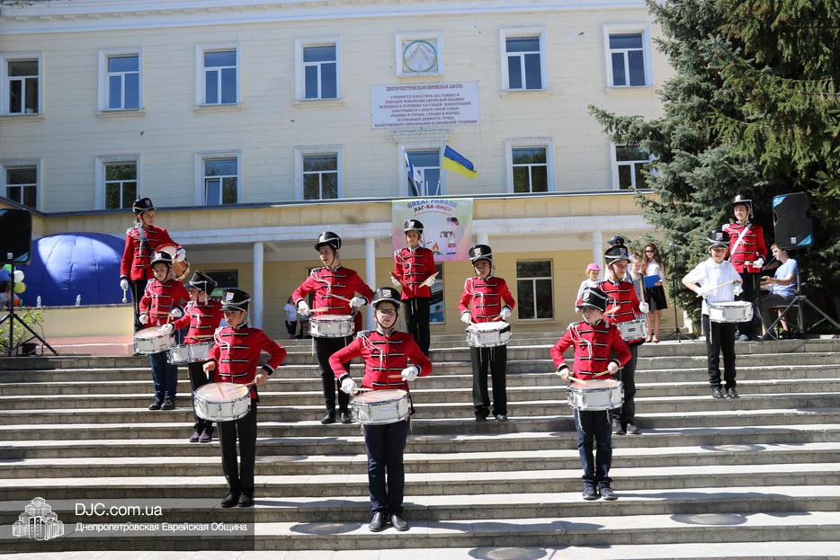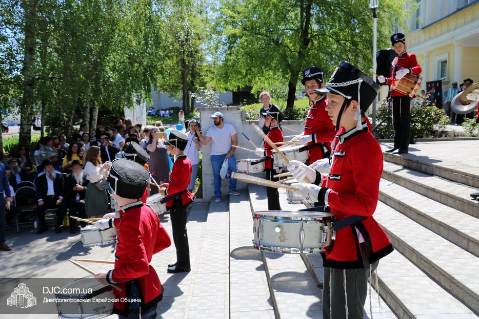 Для того, чтобы прийти в себя после парада, вначале состоялся небольшой ланч, а после того, как дети вкусно и кошерно перекусили, началась концертная часть, с выступления знаменитого отряда барабанщиков иешивы-ктана.
