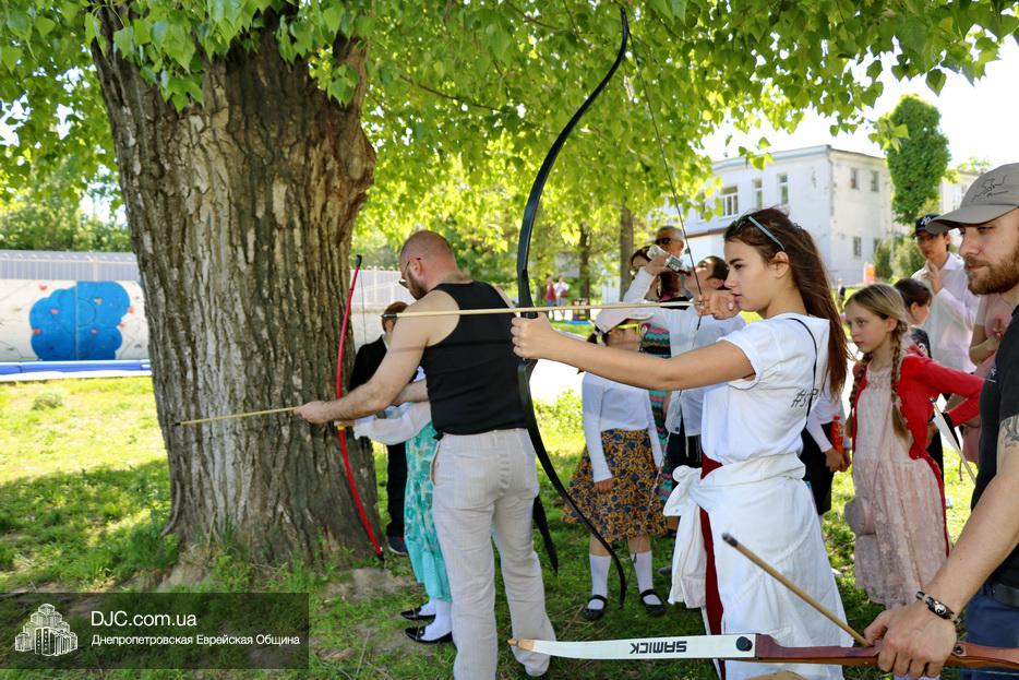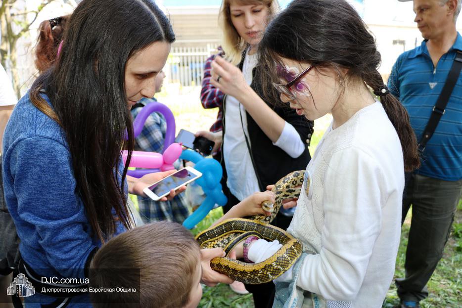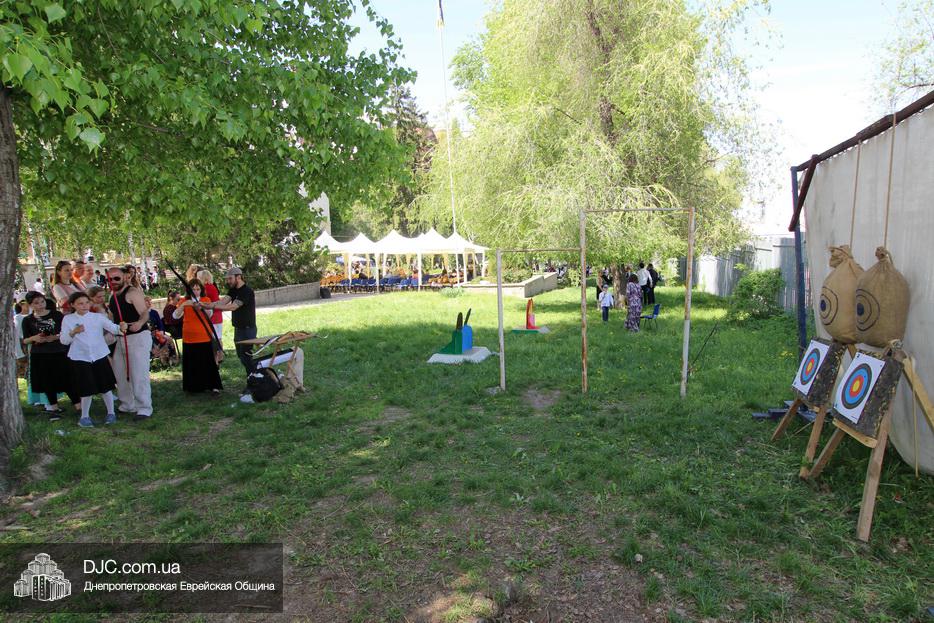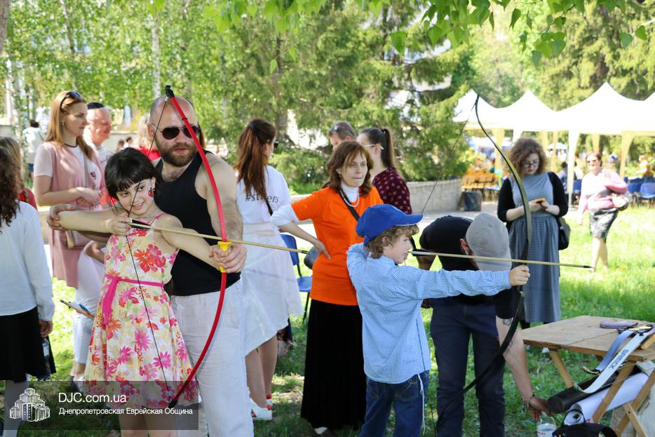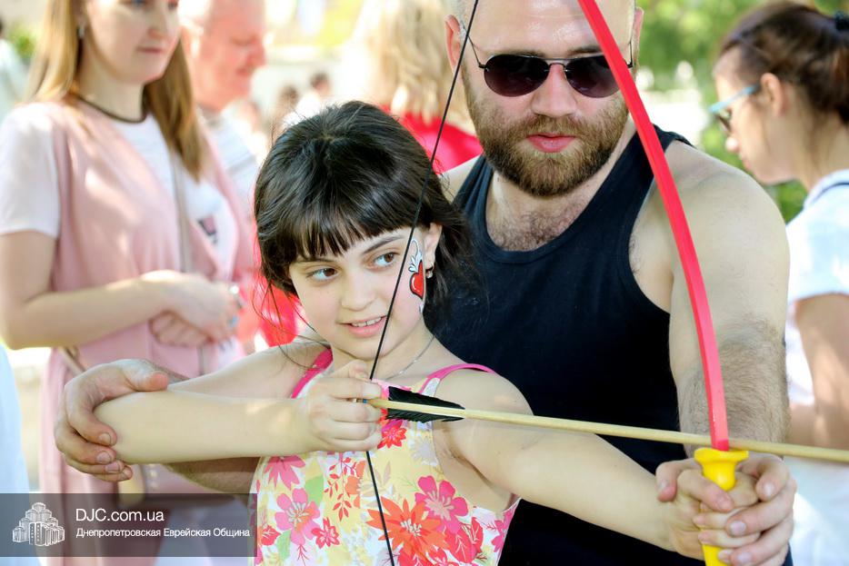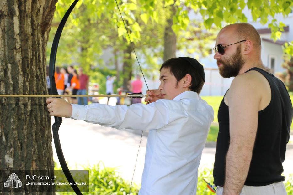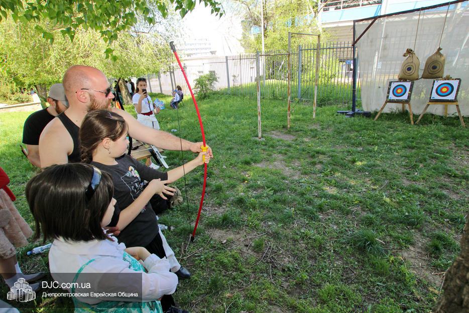 После окончания этого оригинального номера, ведущие объявили о начале работы многочисленных станций – самых разнообразных. Тут было и катание на паровозиках и всамделишних пони, соревнования в надувной полосе препятствий, планетарий и аквагрим, изготовление самолетиков и возможность сразиться на гигантских палицах. Был тут и «трогательный зоопарк» с питонами, кроликами, хорьками и сцинками, и, конечно же, станция по стрельбе из луков – традиционное развлечение в Лаг Ба Омер.