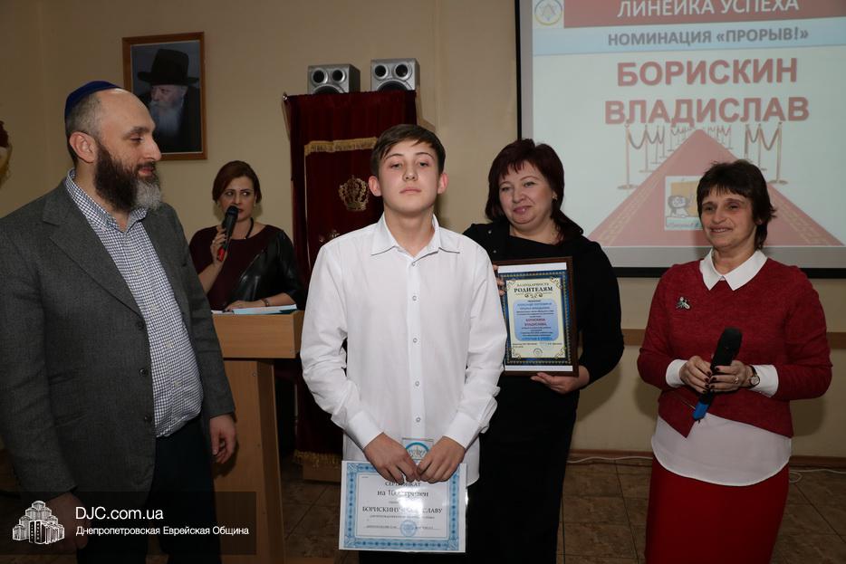 Для награждения наиболее отличившихся учеников были приглашены директор школы (УВК №144) Елена Краснова и директор еврейской общины Зелиг Брез.