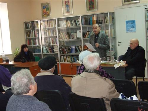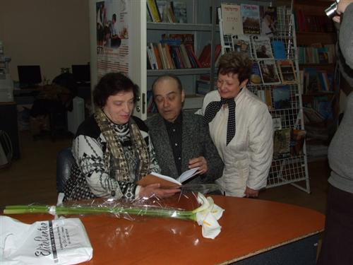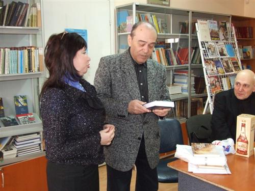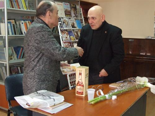 В завершение встречи Владимир Кацельбоген подарил библиотеке экземпляр своего сборника, Адель Левикова в ответ подарила автору книгу Меира Шалева «Русский роман», а Юрий Полисский, который откровенно радовался безусловному успеху своего друга, подар
