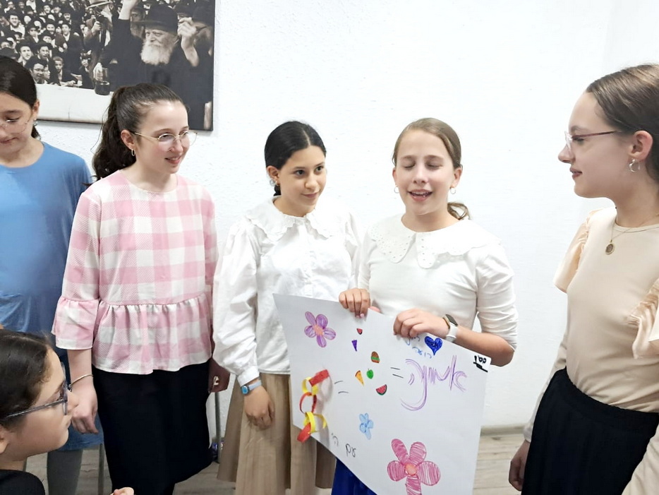 Ученицы махона на этом фарбренгене, в день Гимель Тамуз, пели нигуним и учили маамар Ребе в особенной форме. Для творческого задания они поделились на группы, чтобы нарисовать плакат о своем видении самых важных моментов этого дня и презентовали свои работы. У девочек были разные идеи, и они их защитили, как дипломы.