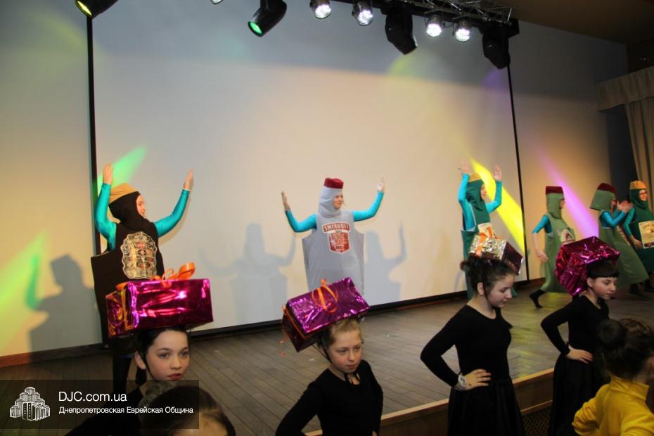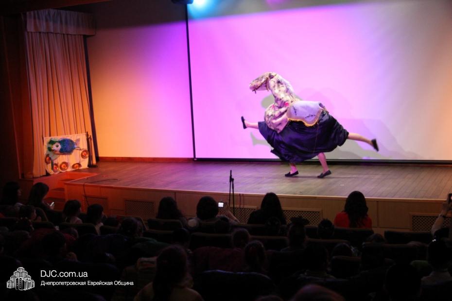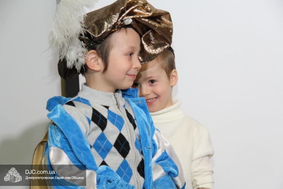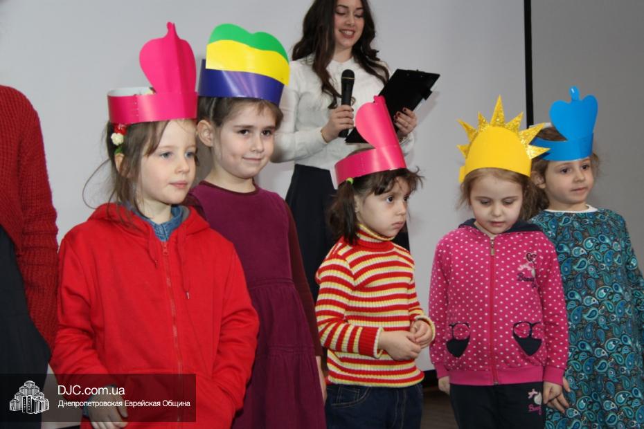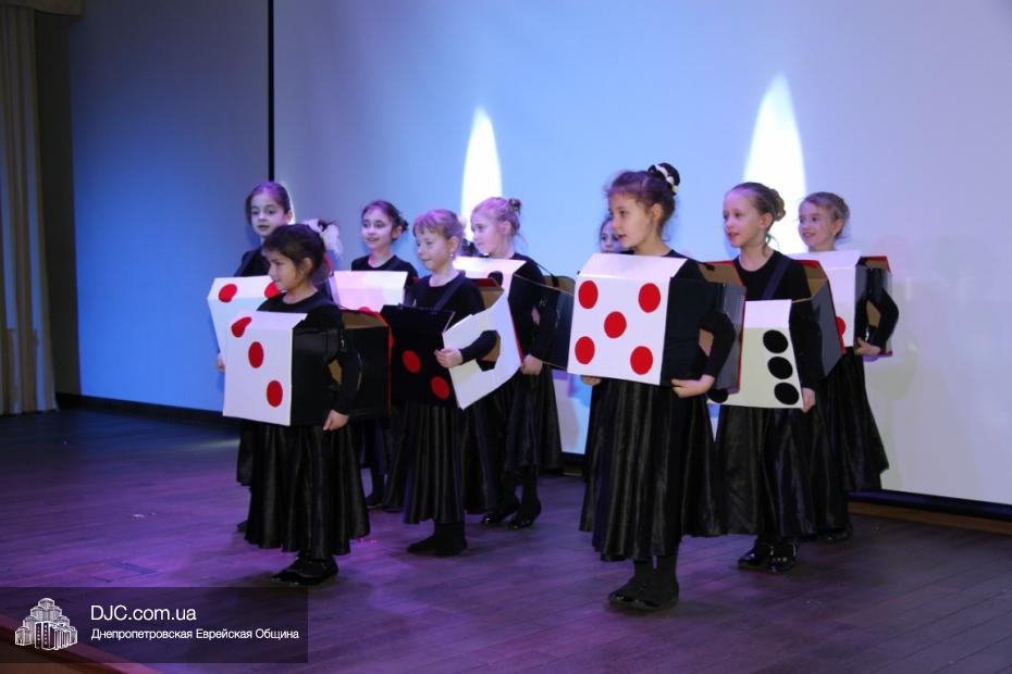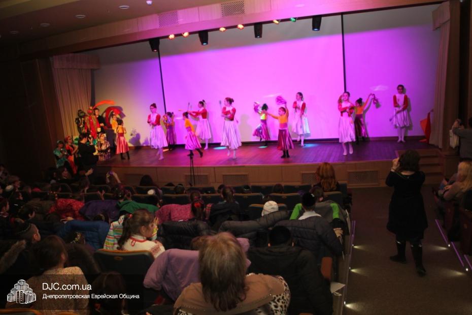 В соответствии с традицией вспоминать историю праздника максимально коротко и максимально весело, девушки представили традиционный пуримшпиль, в который органично вплели и красочные костюмы, и песни, и танцы, и конкурсы. И, как всегда, праздник махона «Бейс Хая-Мушка» получился очень музыкальным – ведь музыке и хореографии в программе обучения и воспитания еврейских «принцесс» отводится особое место. Так, в одном из конкурсов зрительницы смогли принять участие в «конкурсе красоты для принцесс», в другом – юные гости праздника на скорость должны были переодеться в царей. Также проходили конкурсы и для всего зала: большие мягкие кубики нужно было выбросить на сцену с максимальным результатом, и, конечно, наибольший восторг зрителей вызвало «хоровое» чтение отрывков из свитка Эстер – какая половина зала громче.