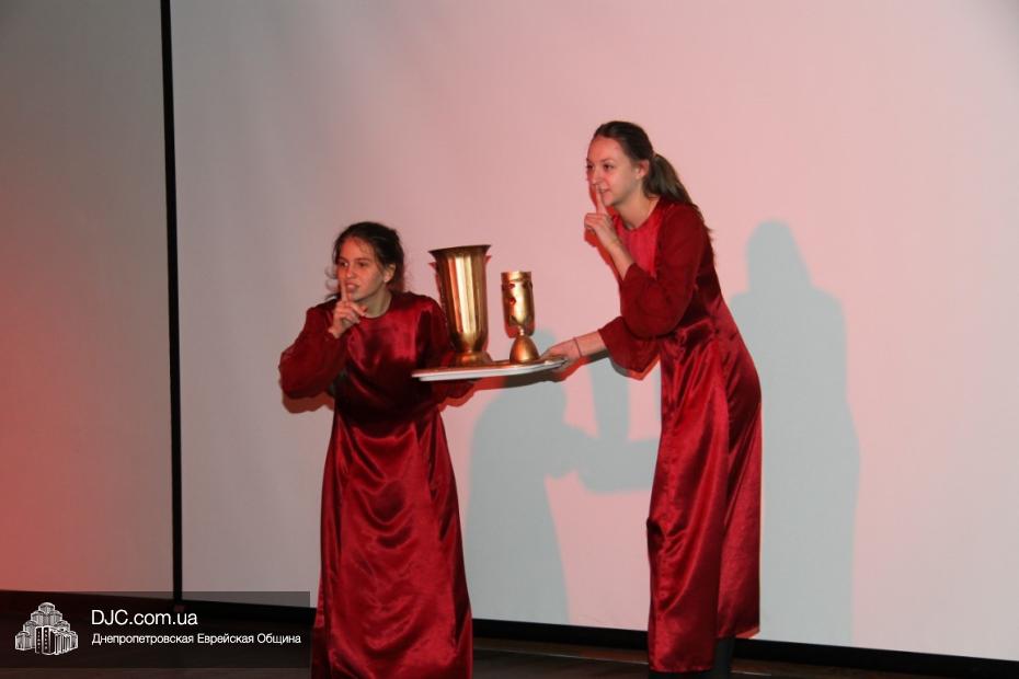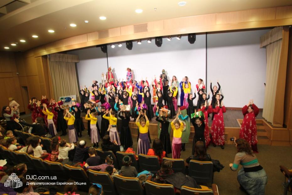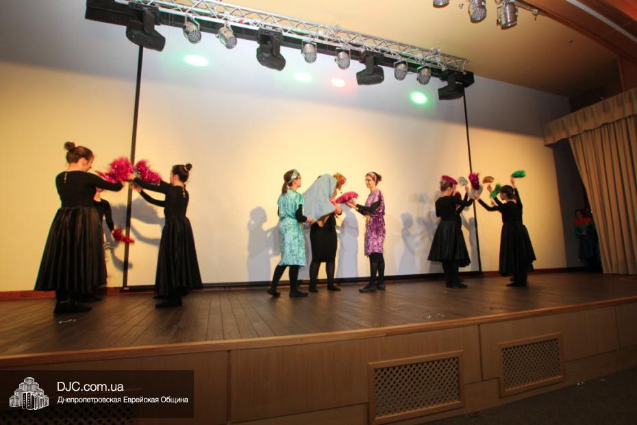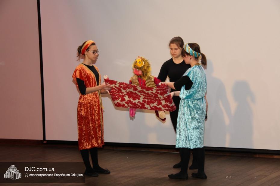 Как и полагается каждому пуримшпилю, этот праздничный спектакль, рассказывавший об истории праздника Пурим и подвиге царицы Эстер, получился красочным, ироничным и задорным, а завершился большой общей песней, в которой приняли участие все ученицы махона.