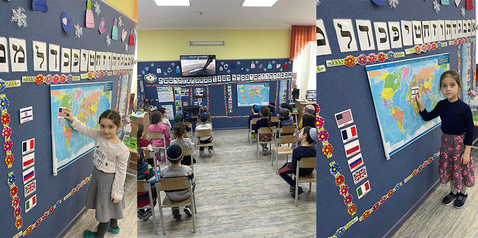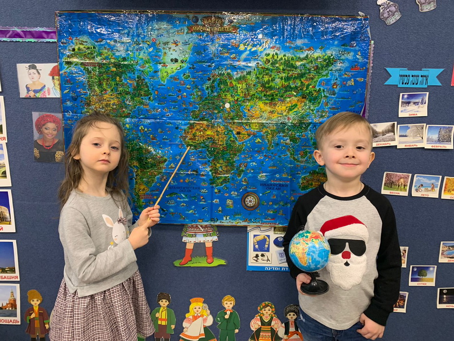 В креативной, интересной и познавательной форме наши воспитанники знакомились с земным шаром. Они много узнавали о разных странах, которые существуют в мире, малыши находили их расположение на карте, рассматривали и рисовали. Да и путешествовали, можно сказать, с удовольствием и интересом по всему миру, смотрели и знакомились с различными народами, их языками, флагами, обычаями, столицами, теми или иными достопримечательностями. Конечно же, узнавали также про еврейские общины, которые находятся по всему миру, и их особенности в данной конкретной стране.