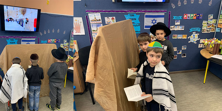 В «Бейт Циндлихт», дошкольном образовательном центре (входящем, вместе с еврейской школой, в единый УВК№144), на этой неделе было две темы, для старших групп – «Города и страны», а для младших – «Транспорт», однако все воспитанники еврейского детского сада с удовольствием «путешествовали».