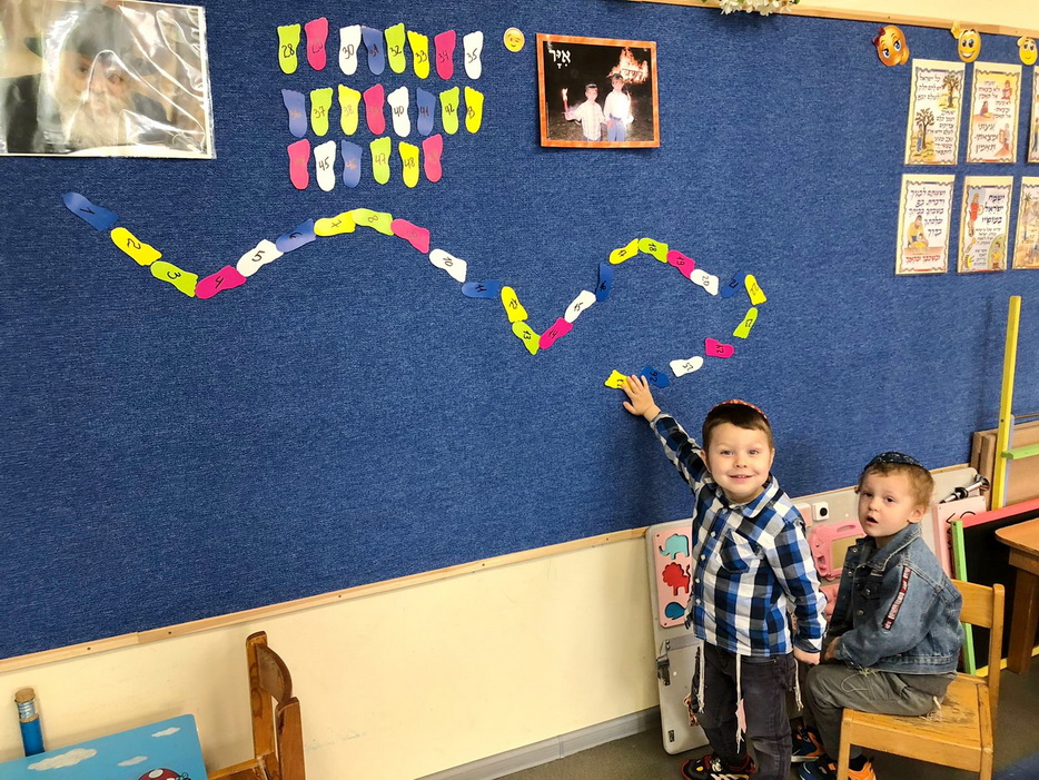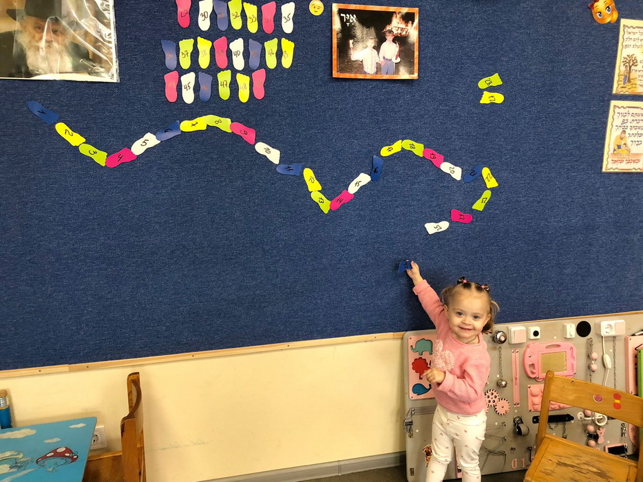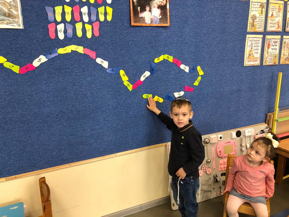 Так же, мы не забываем считать Сфират аОмер. Каждый день после молитвы мы вызываем по одному ребенку, и он приклеивает «ножку» на доске соответствующую дню Омера, сказав при этом благословение. Таким образом, приближаясь к празднику Шавуот, детки с удовольствием считают дни».