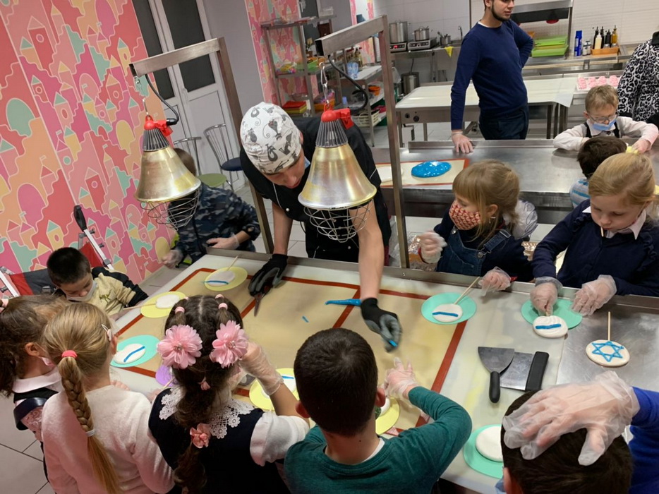 Именно поэтому очередная встреча в проекте «Старший брат/старшая сестра» прошла в формате мастер-класса по изготовлению карамели, причем карамель участники программы учились делать не просто вкусную и красивую, а именно еврейскую, то есть с еврейской символикой. А пока шло занятие в «Zuckerwill — солодкий простір», волонтеры Коля и Наташа рассказывали детям о месяце Кислев и его памятных датах.