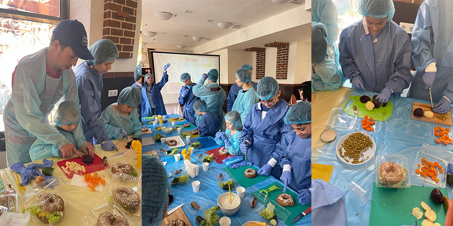 Зустріч відбулася у «Menorah Cafe», а основною темою заходу було ближче познайомити дітей з їжею військових. Волонтери підготували цікаву інформацію про те, як годують військових у різних країнах світу. Щоб потрапити на наш кошерний майстер-клас, хлопцям та дівчатам необхідно було пройти невеличкий тест на знання традицій кашруту. Як же приємно бачити і чути, як усі діти одноголосно давали правильні відповіді. Наші розповіді на програмах та online зустрічах не проходять даремно.