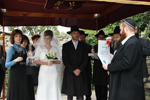 Церемонию, которая проходила в гостеприимном «Бейт ХаБаД Чупин» провел Главный раввин Днепропетровска и Днепропетровского региона Шмуэль Каминецкий. Кошерными свидетелями, удостоверившими Ктубу, выступили реб Акива Романовский и реб Моше Листенгурт, а кошерными свидетелями церемонии Кидушин – реб Шнеур Залман Бухиник и реб Хаим Бурген.