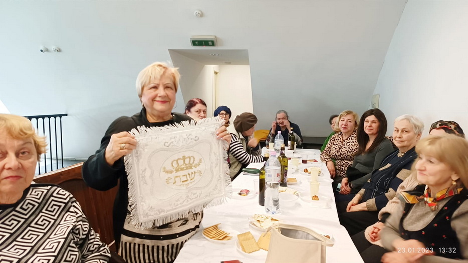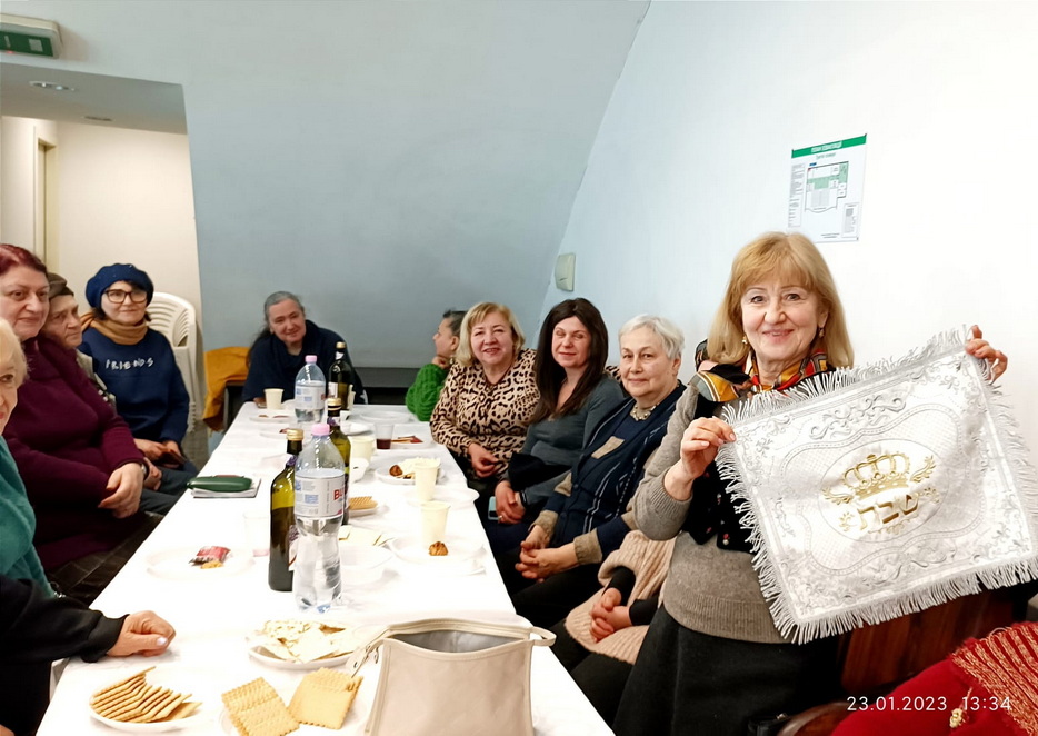 Пять женщин нашей общины, из принявших участие в розыгрыше лотереи в Рош Ходеш месяца Шват, с Б-жьей помощью, выиграли салфетки для хал – это Хая Ласкутова, Хая Ривка Серьга, Этелла Никульшина, Эстер Молчанова и Злата Рива Ландо, у которой, кстати, в этот день был юбилей и ей исполнилось 70 лет! Мазл Тов и до сто двадцати, как до двадцати, дорогая Злата Рива!».