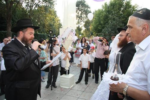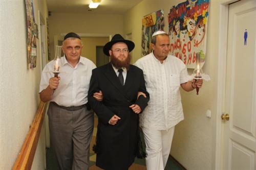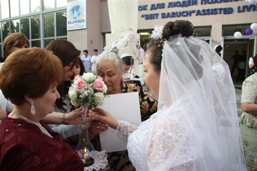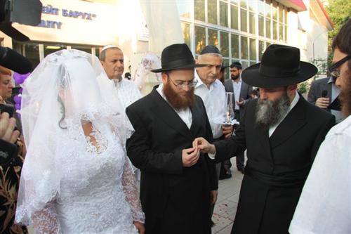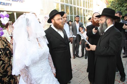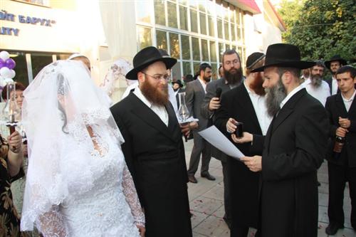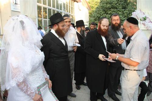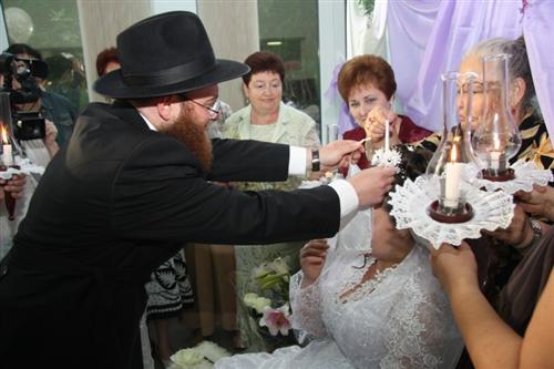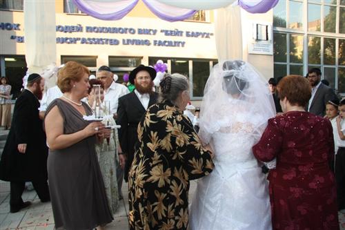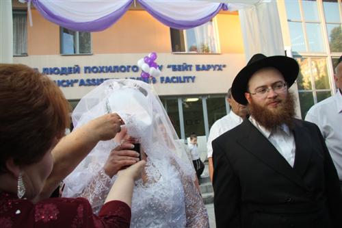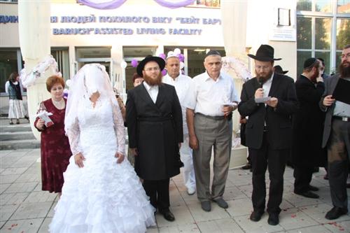 Церемония проходила в Доме для пожилого человека «Бейт Барух», и проводил ее Главный раввин Днепропетровска и Днепропетровского региона Шмуэль Каминецкий. Свадебный гимн «Ми Ядир» исполнил член Попечительского Совета общины Шолом Нахшон, письмо-благословение Любавического Ребе прочитал Мойше Листенгурт, а его перевод на русский язык – Иосиф Масаковский.