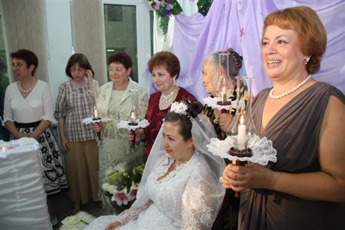 В заключение церемонии Главный раввин Днепропетровска и Днепропетровского региона Шмуэль Каминецкий произнес благословение над бокалом вина, из которого по очереди по глотку отпили жених и невеста, а затем отпить из этого бокала пригласили молодых людей, которые стремятся поскорее найти себе пару и сочетаться законным, в соответствии с еврейской традицией, браком.