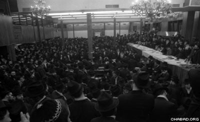 Тысячи людей собрались для того, чтобы услышать Ребе после двух дней, прошедших с того дня, как у него случился сердечный приступ. Ребе обращался к собравшимся через микрофон.